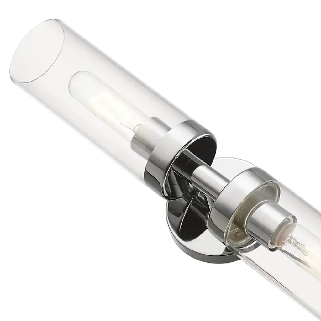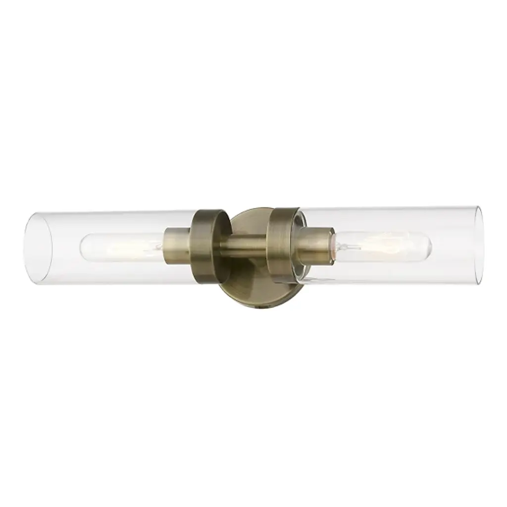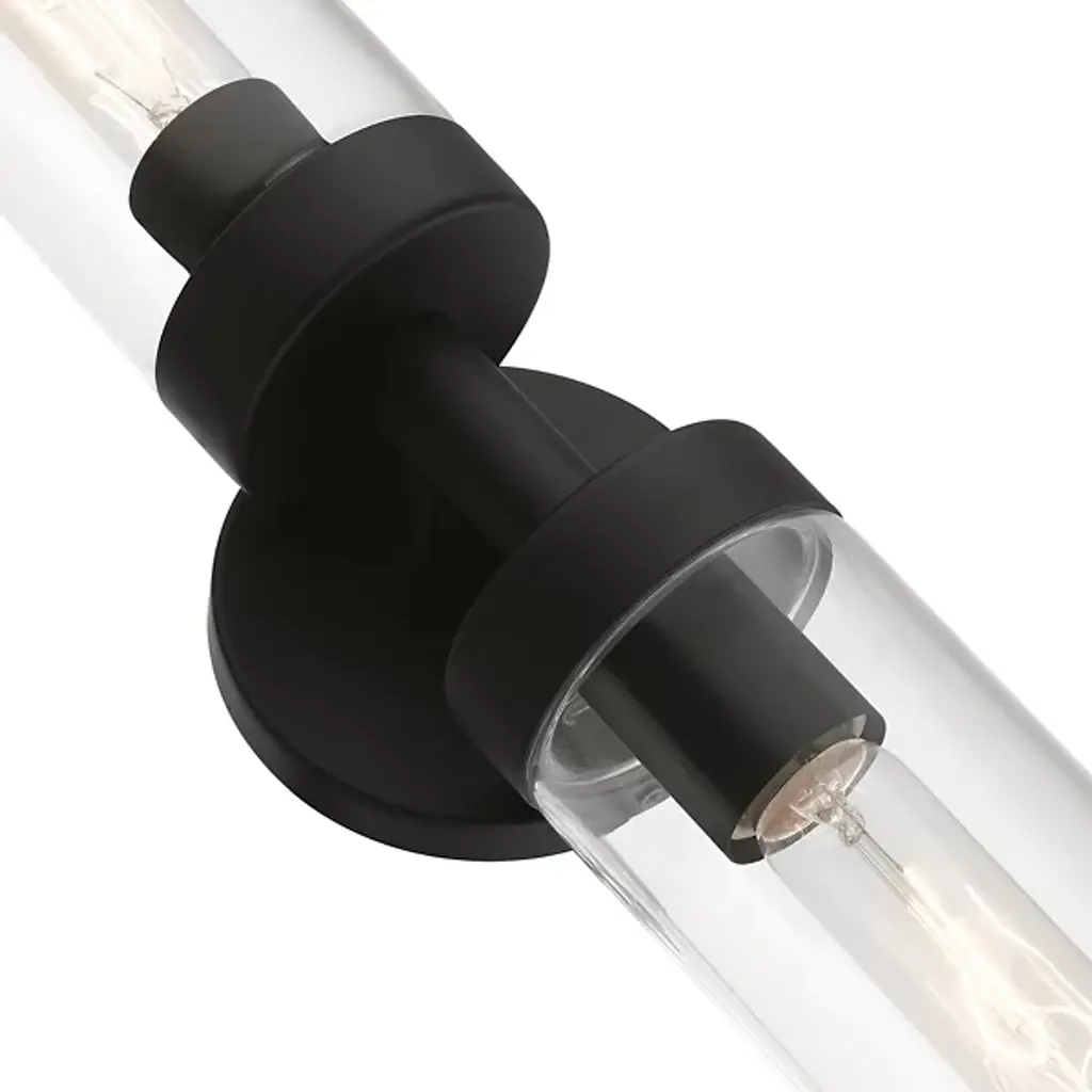 Add a dash of character and radiance to your home with the Natalie Vanity Light by Alder & Ore. This two-light fixture features a fine metal framework with clear glass shades. The clean lines of the backplate complement the cylindrical glass shades creating a minimal, urban look that works with your interior décor. This fixture adds upscale charm and contemporary aesthetics to your home.