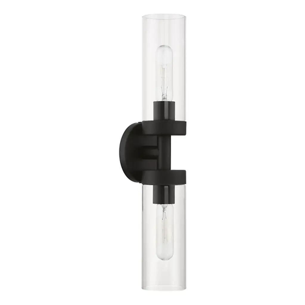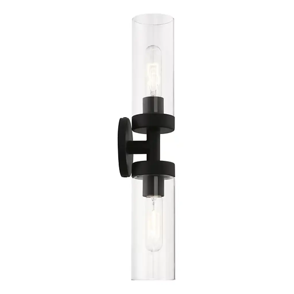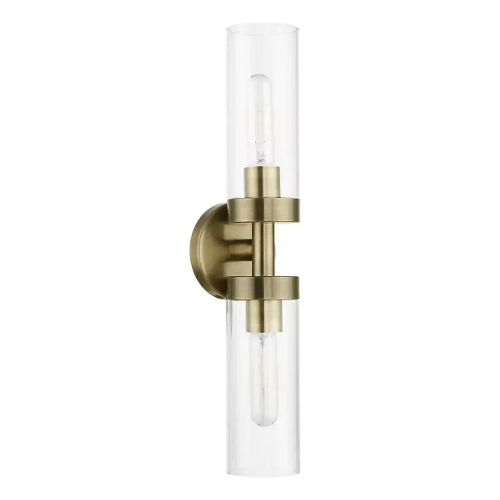 Add a dash of character and radiance to your home with the Natalie Vanity Light by Alder & Ore. This two-light fixture features a fine metal framework with clear glass shades. The clean lines of the backplate complement the cylindrical glass shades creating a minimal, urban look that works with your interior décor. This fixture adds upscale charm and contemporary aesthetics to your home.