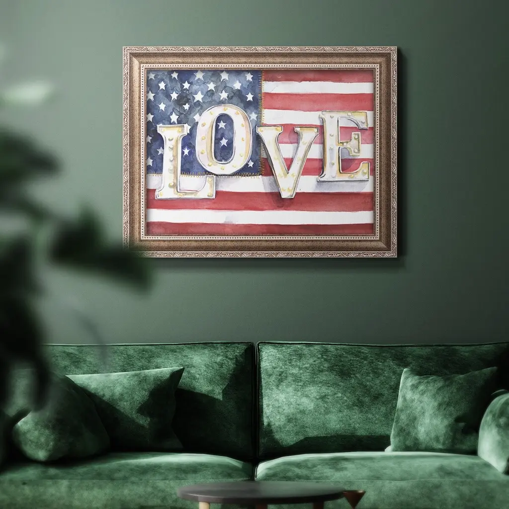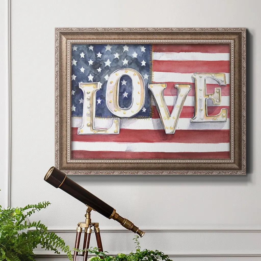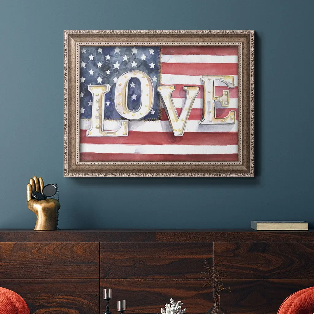 National Anthem Collection A Premium Framed Canvas- Ready to Hang A Premium Framed Canvas created to last. Framed in distressed wood and available in an array of sizes and colors Featuring a beveled a solid wood stretcher bar, each piece comes ready to hand 3 SIZES AVAILABLE 16''X20'' - Overall Size 18'X27'' - Overall Size 24''x36'' - Overall Size Each piece is made to order. Each piece comes with hanging hardware. Made in the USA Ready to Hang Giclee Paper Print Acrylic Glass Beveled Matt Board