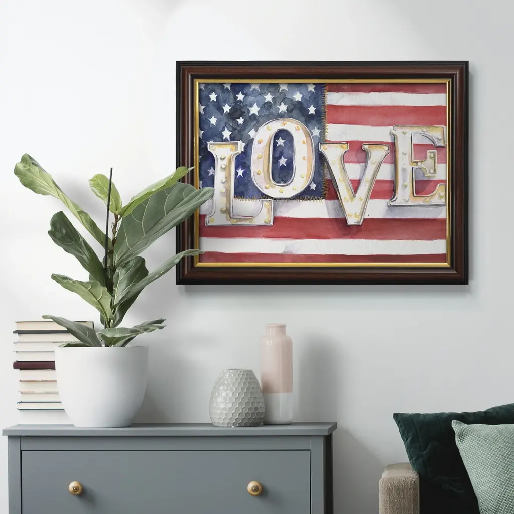 National Anthem Collection A Premium Framed Canvas- Ready to Hang A Premium Framed Canvas created to last. Framed in distressed wood and available in an array of sizes and colors Featuring a beveled a solid wood stretcher bar, each piece comes ready to hand 3 SIZES AVAILABLE 16''X20'' - Overall Size 18'X27'' - Overall Size 24''x36'' - Overall Size Each piece is made to order. Each piece comes with hanging hardware. Made in the USA Ready to Hang Giclee Paper Print Acrylic Glass Beveled Matt Board