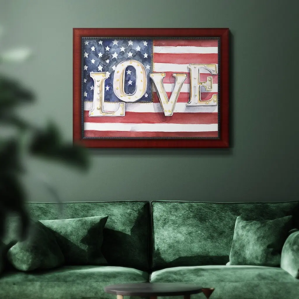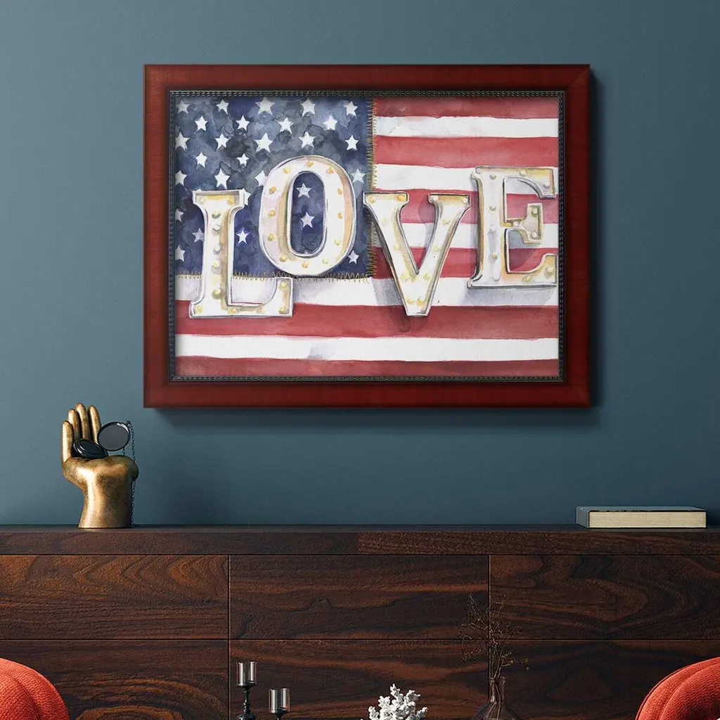 National Anthem Collection A Premium Framed Canvas- Ready to Hang A Premium Framed Canvas created to last. Framed in distressed wood and available in an array of sizes and colors Featuring a beveled a solid wood stretcher bar, each piece comes ready to hand 3 SIZES AVAILABLE 16''X20'' - Overall Size 18'X27'' - Overall Size 24''x36'' - Overall Size Each piece is made to order. Each piece comes with hanging hardware. Made in the USA Ready to Hang Giclee Paper Print Acrylic Glass Beveled Matt Board