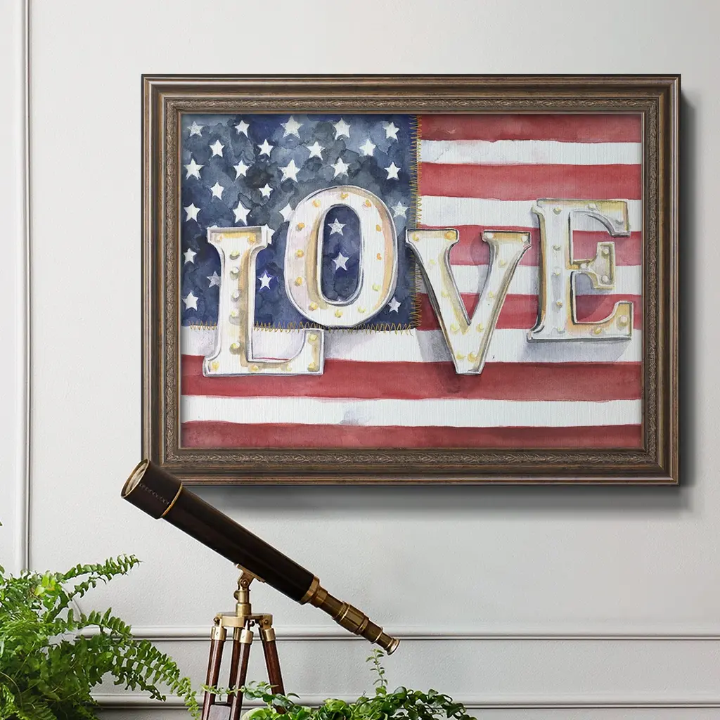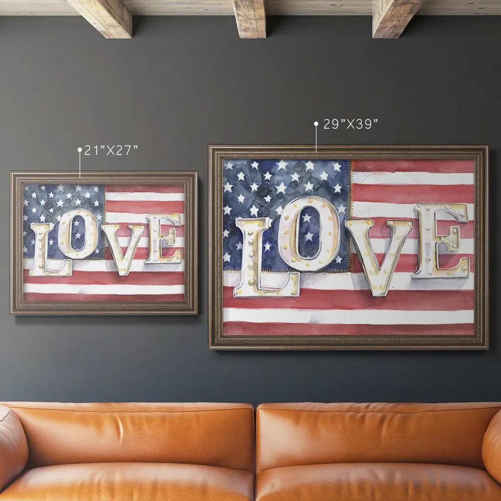 National Anthem Collection A Premium Framed Canvas- Ready to Hang A Premium Framed Canvas created to last. Framed in distressed wood and available in an array of sizes and colors Featuring a beveled a solid wood stretcher bar, each piece comes ready to hand 3 SIZES AVAILABLE 16''X20'' - Overall Size 18'X27'' - Overall Size 24''x36'' - Overall Size Each piece is made to order. Each piece comes with hanging hardware. Made in the USA Ready to Hang Giclee Paper Print Acrylic Glass Beveled Matt Board