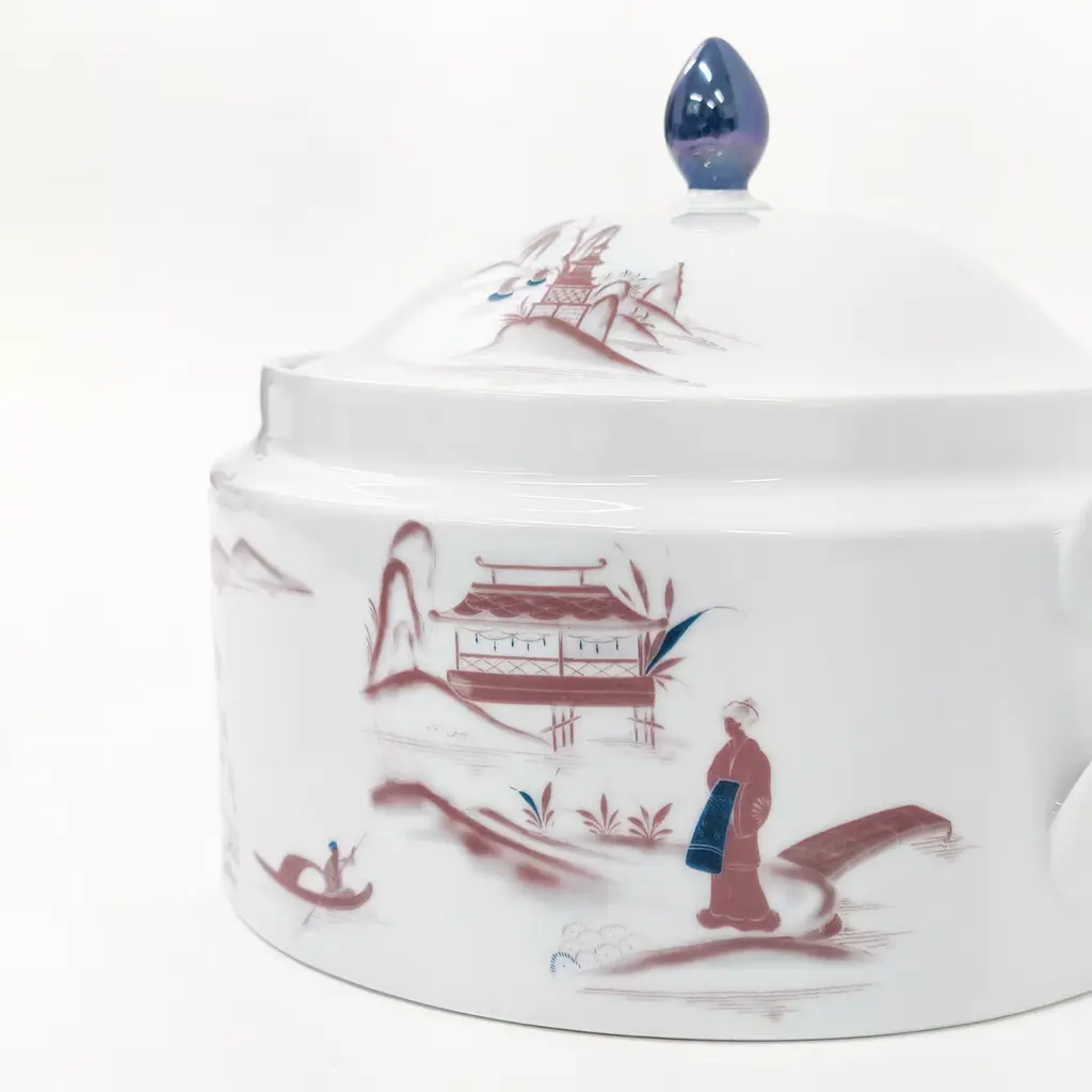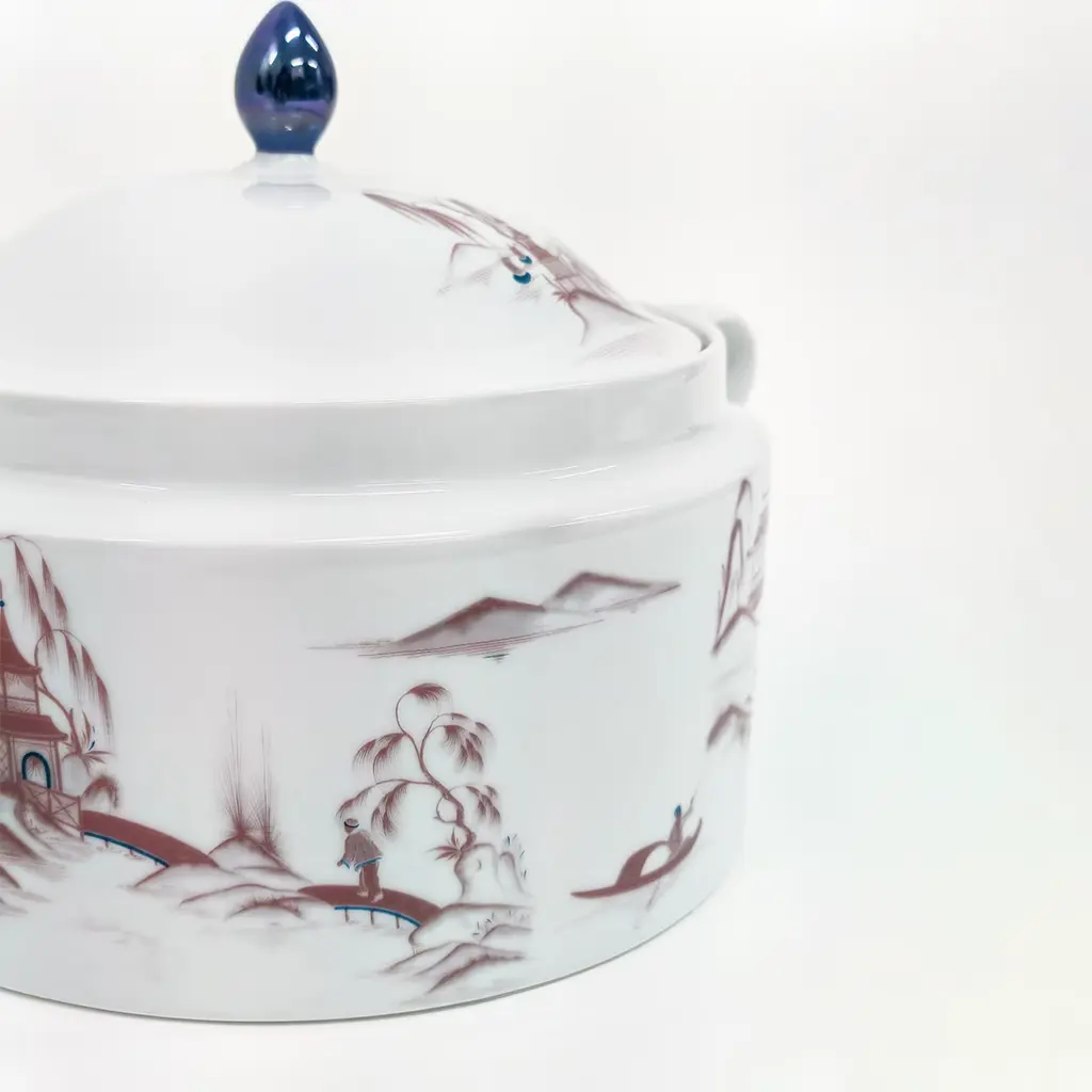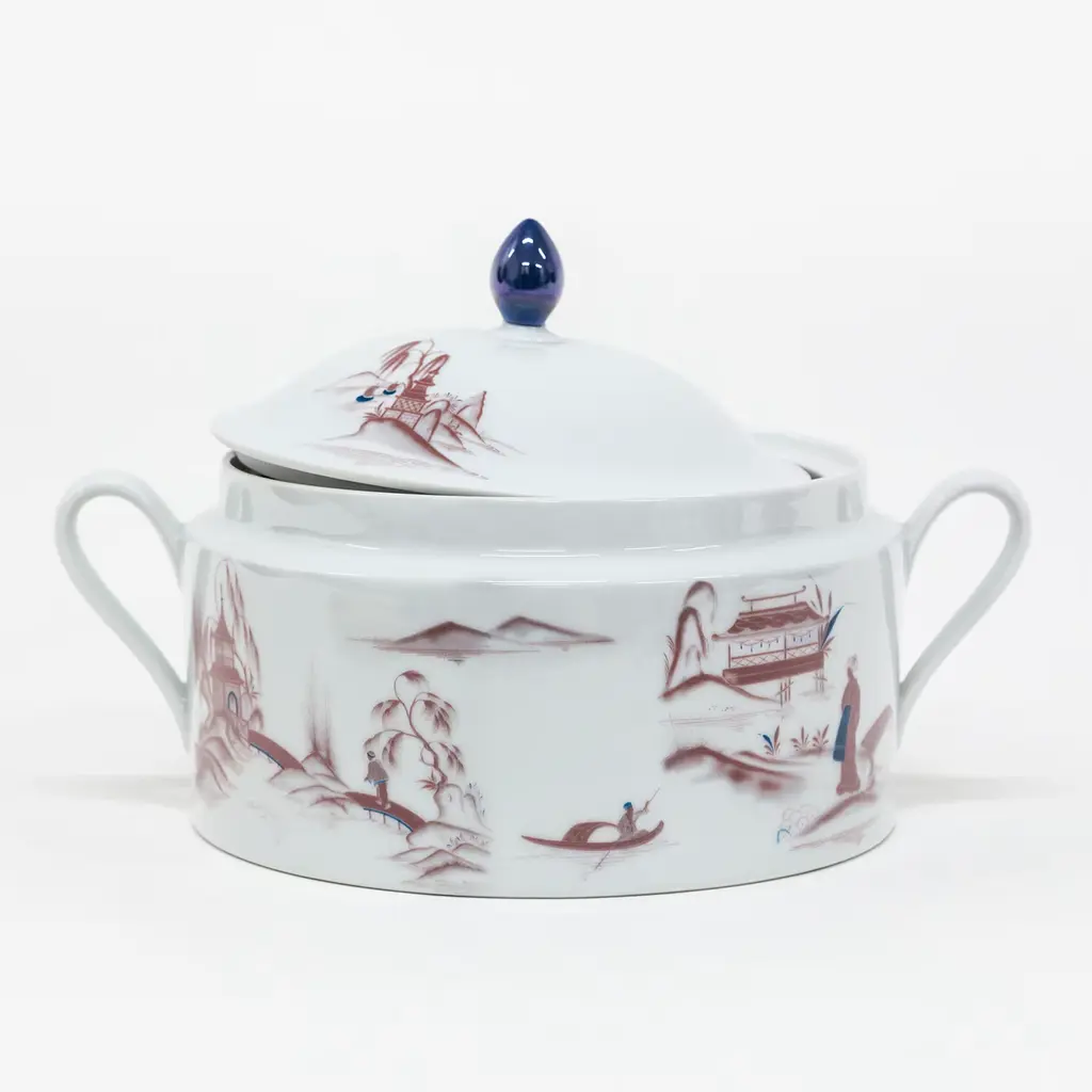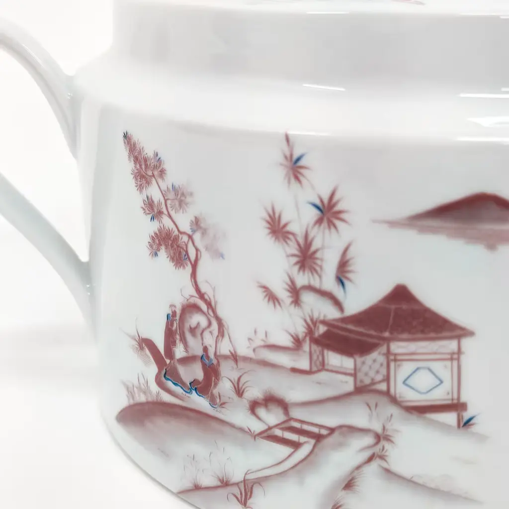 Evoking the serene simplicity of summer, this gorgeous soup bowl features a handmade painting of an idyllic Japanese landscape inspired by the traditional Imari imagery, distinguished for its three-color palette.