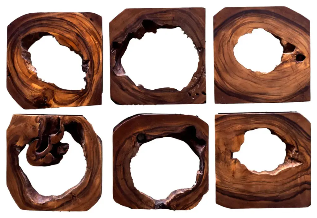 Natural Abstract Wood Slice Wall Art Set 6 Live Edge Open Panels Square Shape