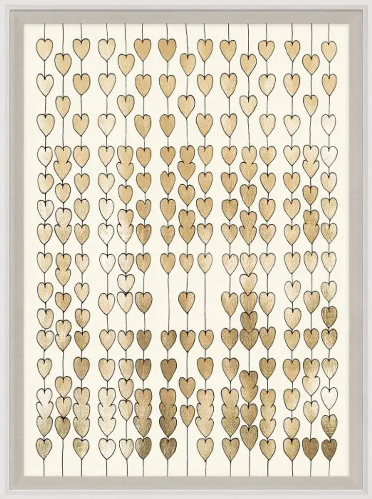 This endearing illustration captures the simple earnestness of romance in a playful, contemporary style. Taken from iconography on vintage playing cards, this collection is rendered in gold, silver, or pink creating a glittering celebration.This art is a glittering reminder that you can never have too much love! These pieces by Natural Curiosities are custom and made to order. Framing options include an acrylic box or wooden frame on fine art acid free paper. Also available unframed. Dimensions Delivery Shipping