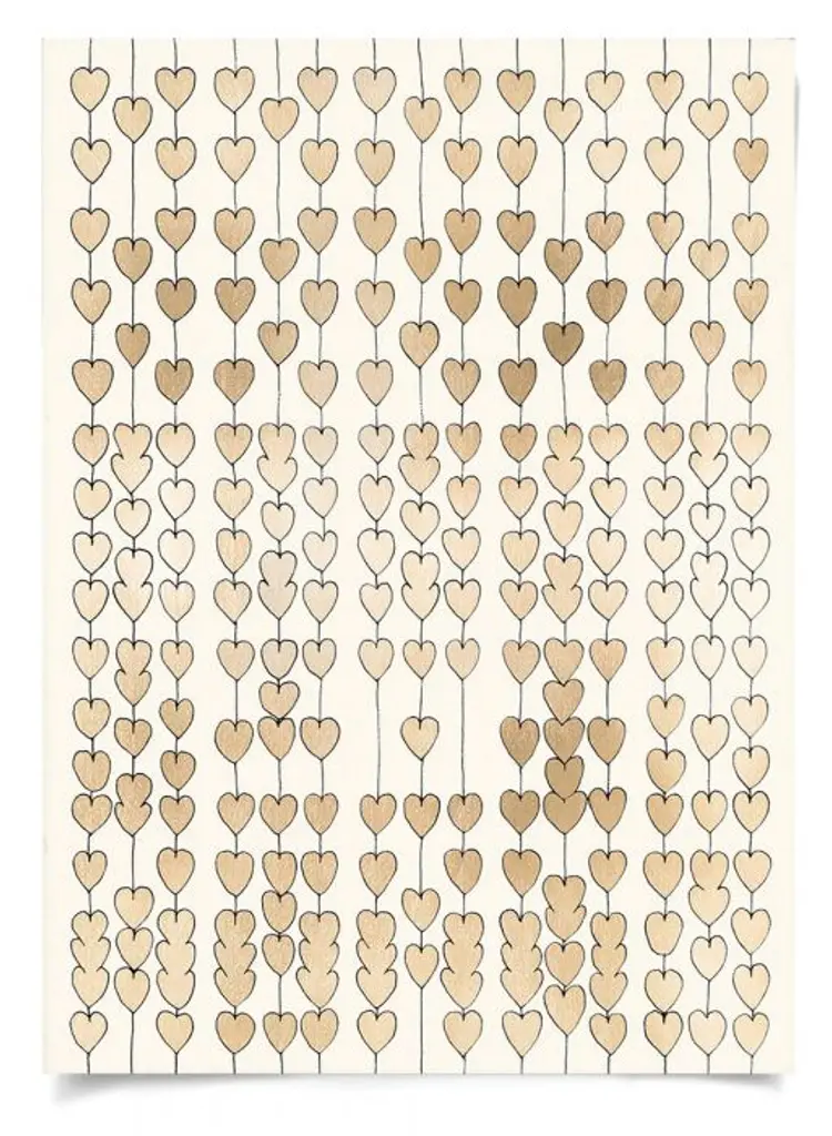 This endearing illustration captures the simple earnestness of romance in a playful, contemporary style. Taken from iconography on vintage playing cards, this collection is rendered in gold, silver, or pink creating a glittering celebration.This art is a glittering reminder that you can never have too much love!