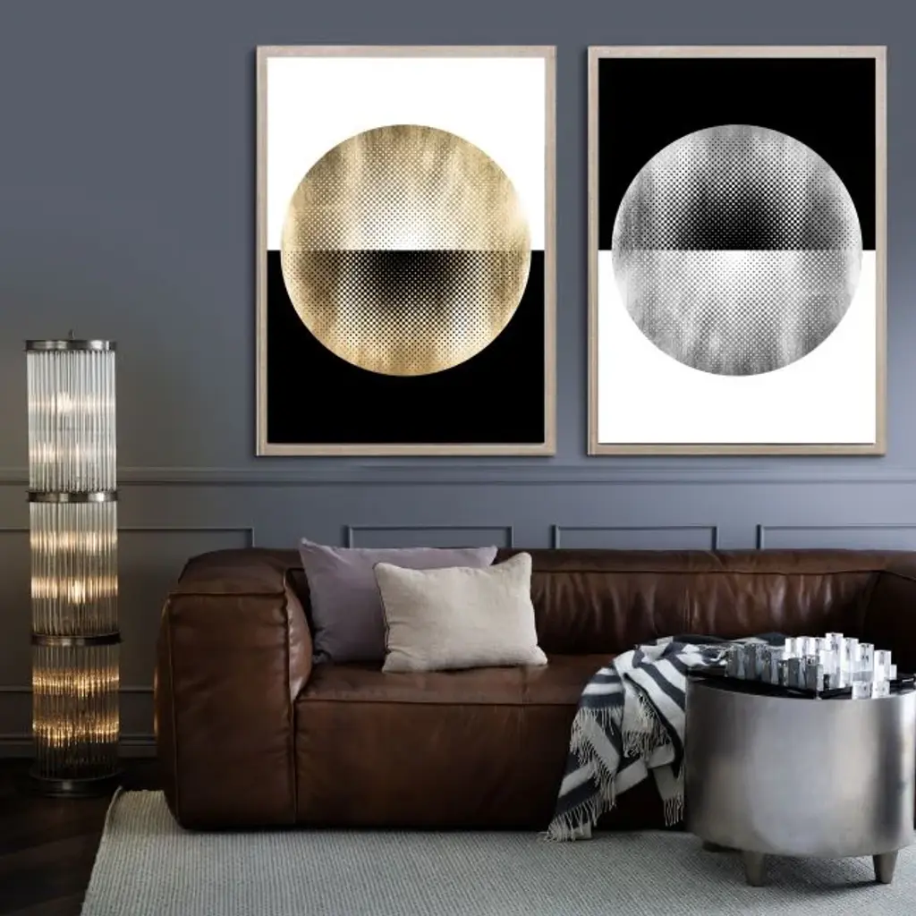 Halftone Circles Gold artwork from Natural Curiosities celebrates abstract art at its finest. The Halftone Circles series is created on fine art paper and detailed with gold and silver leaf, creating a beautifully minimalist design.