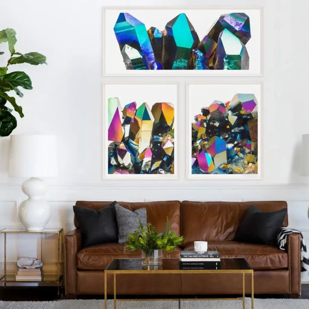 Celebrating, once again, the beauty in nature. These magical colors come from original minerals from the ground. They capture the colors of the rainbow and celebrate the glory of nature's treasures. This stunning art by Natural Curiosities is custom and made to order. Framed in a white wooden or acrylic box frame. Also available unframed. 'Iridescent Geodes 1, 2, and 3' are sold individually. Celebrating, once again, the beauty in nature. These magical colors come from original minerals from the ground. They capture the colors of the rainbow and celebrate the glory of nature's treasures. This stunning art by Natural Curiosities is custom and made to order. Framed in a white wooden or acrylic box frame. Also available unframed. 'Iridescent Geodes 1, 2, and 3' are sold individually.