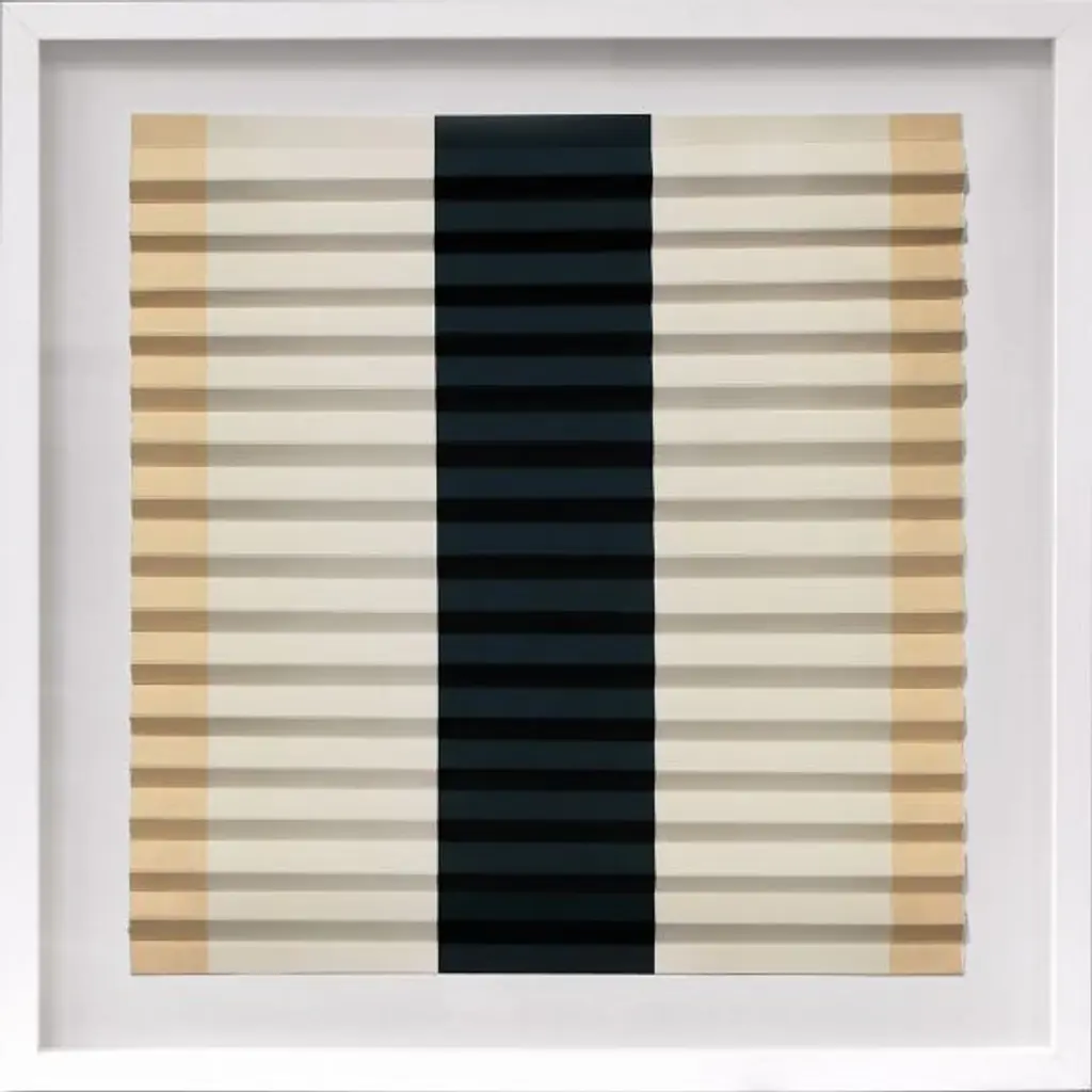 As part of our dimensional processes, folding and creating designs with our Fine Art, acid-free papers is being expanded, this time we wanted to do a vertical series and allow the running through of our color bands to work and create a single line down the fold of the paper and create a new dimensional series. This stunning 'Linear Folded Dreams 2' artwork by Natural Curiosities is made to order by artisans in Los Angeles, California. Framing options include an acrylic box or white wooden frame on fine art acid free paper. For sale separately, Linear Folded Dreams 1, 3, and 4. Dimensions: Art with White Wooden Frame: 31" x 31" Art with Acrylic Frame: 31" x 31" Delivery Framed, Wood: Please allow up to 8 weeks for delivery Framed, Acrylic: Please allow up to 10 weeks for delivery. Shipping Free shipping and White Glove residential delivery, which includes in-home placement of the art in the room of your choice, unpacking, and package/debris removal! As part of our dimensional processes, folding and creating designs with our Fine Art, acid-free papers is being expanded, this time we wanted to do a vertical series and allow the running through of our color bands to work and create a single line down the fold of the paper and create a new dimensional series. This stunning 'Linear Folded Dreams 2' artwork by Natural Curiosities is made to order by artisans in Los Angeles, California. Framing options include an acrylic box or white wooden frame on fine art acid free paper. For sale separately, Linear Folded Dreams 1, 3, and 4.