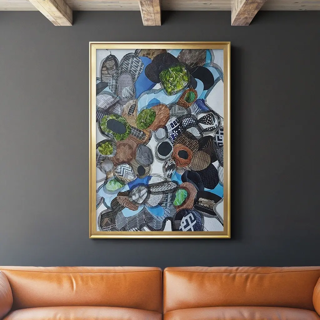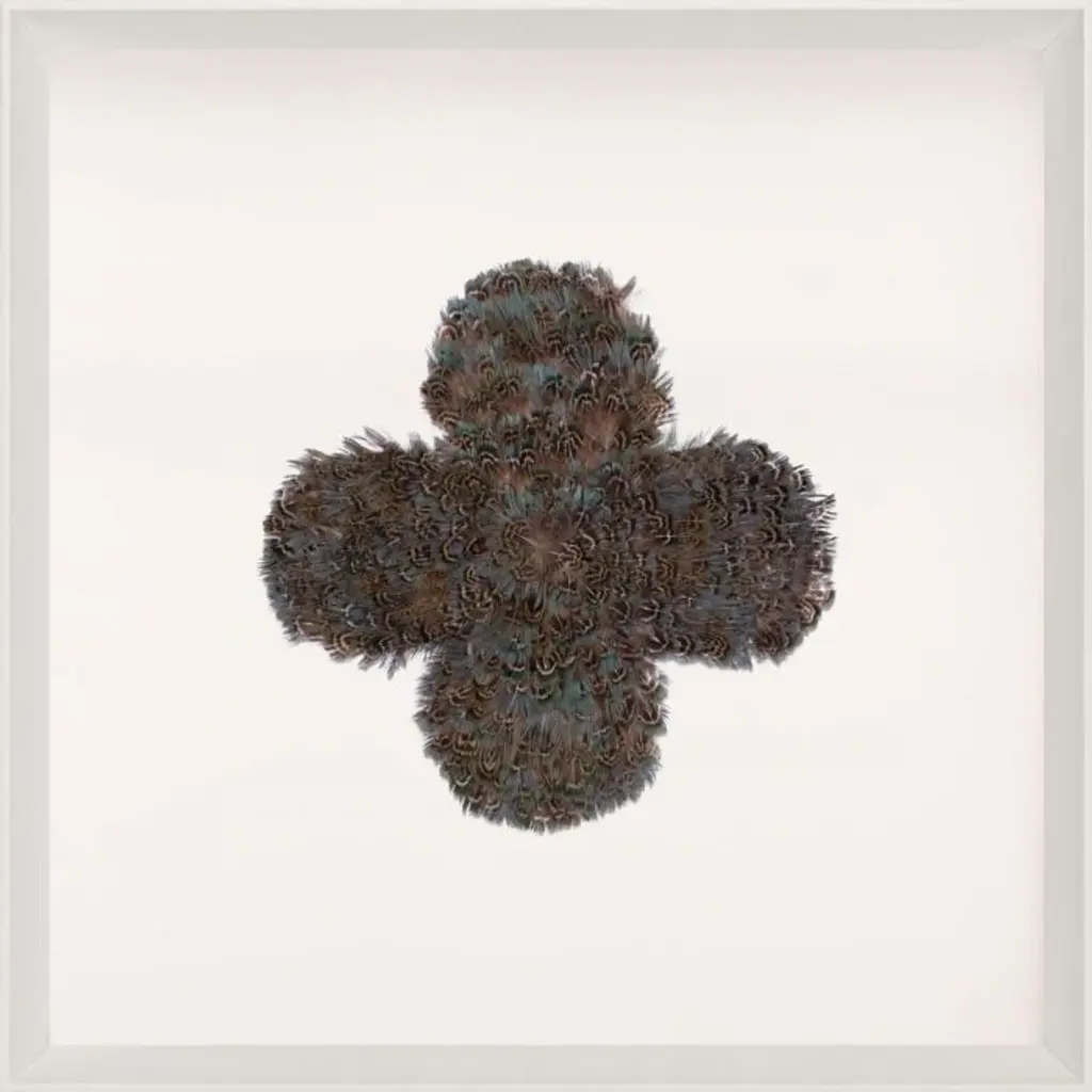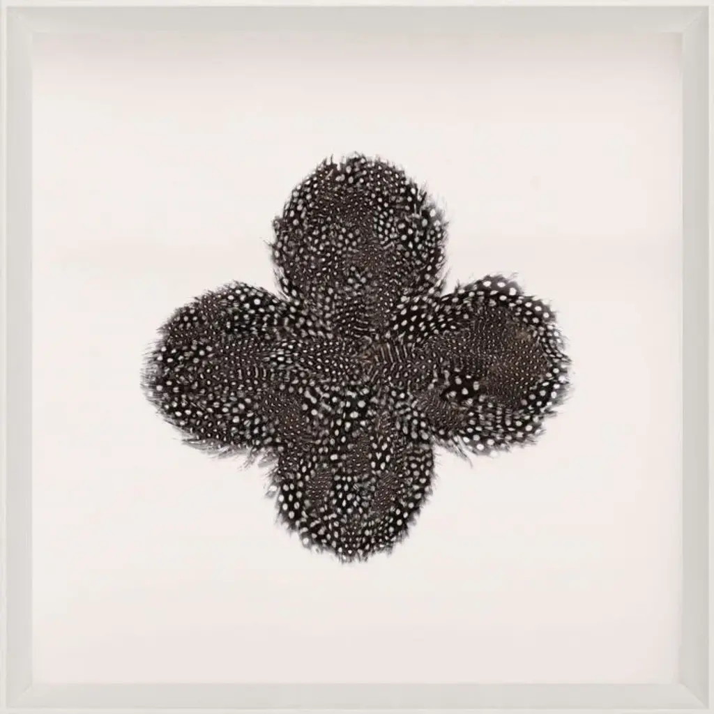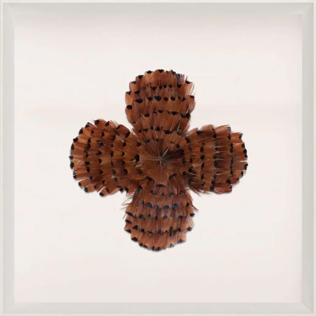 Introducing our newest Queen Victoria Feathers series, this time using real feathers that have been responsibly sourced and creating these magical designs through their amazing feather patterns. Each collection is handmade and each one will have a slight variation based on the unique patterns in the real feathers. Framed and floated in a white wooden frame. Custom made by artisans in California.