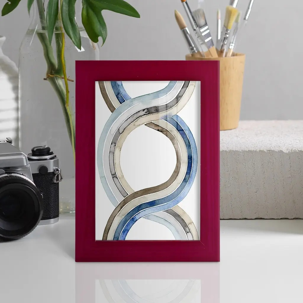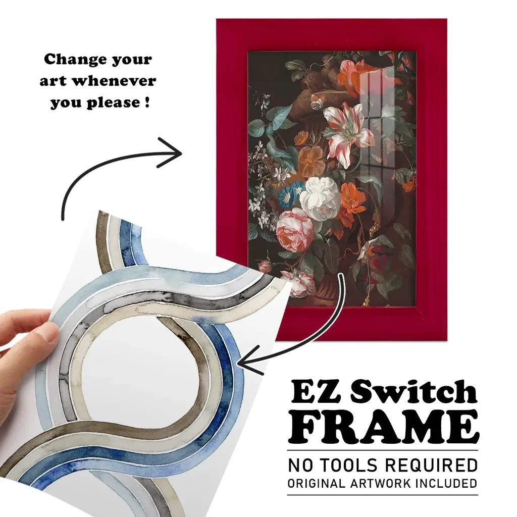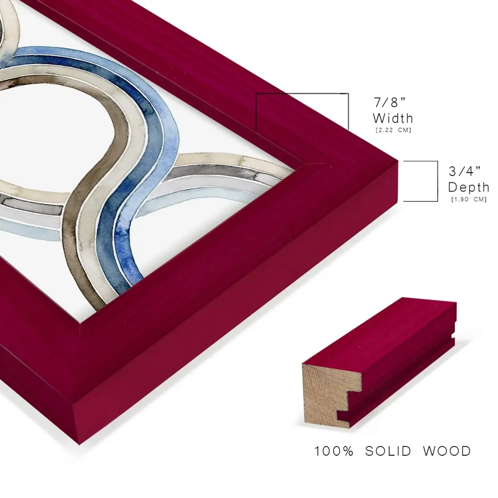 Natural Weaving I -EZ SWITCH Framed Print w/glass-Cherry Red A delightful, framed print. Featuring a solid wood frame with real wood glass. This premium print is giclee quality. In addition, every frame features a removable back and table top stand. This allows you to change your art in the future or to just stand the art on a table for a new look. We are sure you'll enjoy our new series of EZ SWITCH Framed Art. Solid Wood Frame Real Glass Removable / Replaceable Art Built in Tabletop Stand Sizes range from 4x6 up to 12x15 - buy just one or pair them up as sets as you see fit.