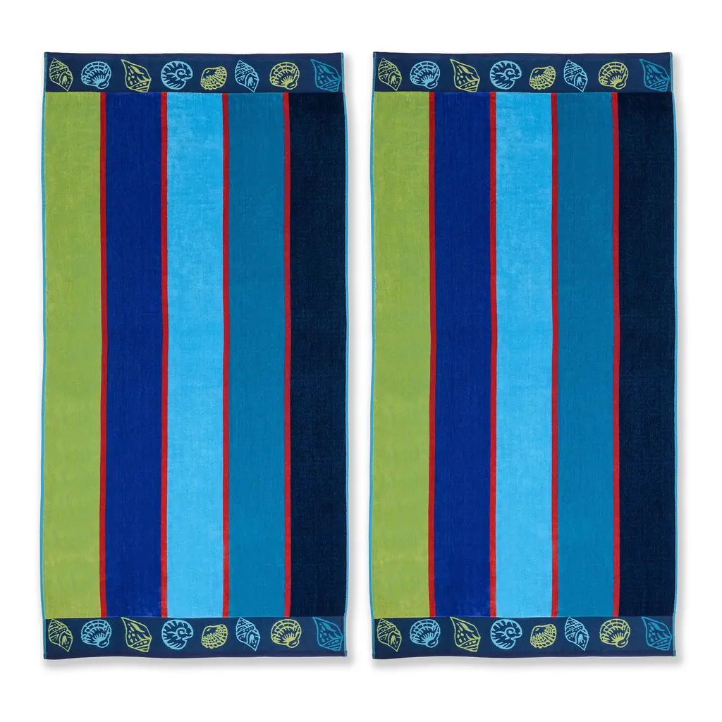 Elevate your Poolside or beachside style with a new 2 Piece Beach Towel Set from Nautica. Available in a variety of prints and colors, this eye-catching set is designed to turn heads. These towels add a splash of excitement making sure you stand out with bold and stylish flair. Each set includes two matching beach towels, complete with a branded locker loop for added convenience. Crafted with care, these towels are made using non-toxic dyes and are oeko-tex standard 100 certified for quality and safety. With a soft and plush feel, each towel measures 36"w x 68"l, offering the perfect combination of comfort and functionality for your beach or pool days