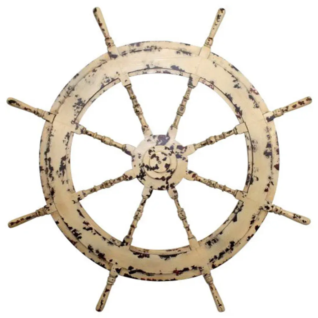 Inspired by steering wheels used on vintage yachts, our nautical wall art is classic and elegant. Handcrafted of wood. Hand finished in distressed cream with black accents. Available separately in other sizes and colors. Size: 36'''' H x 36'''' W x 1'''' Deep Weight: 5. 5 lbs. Heirloom Quality - Expertly hand crafted and hand finished Due to the hand crafted nature of this piece, each piece may have subtle differences.