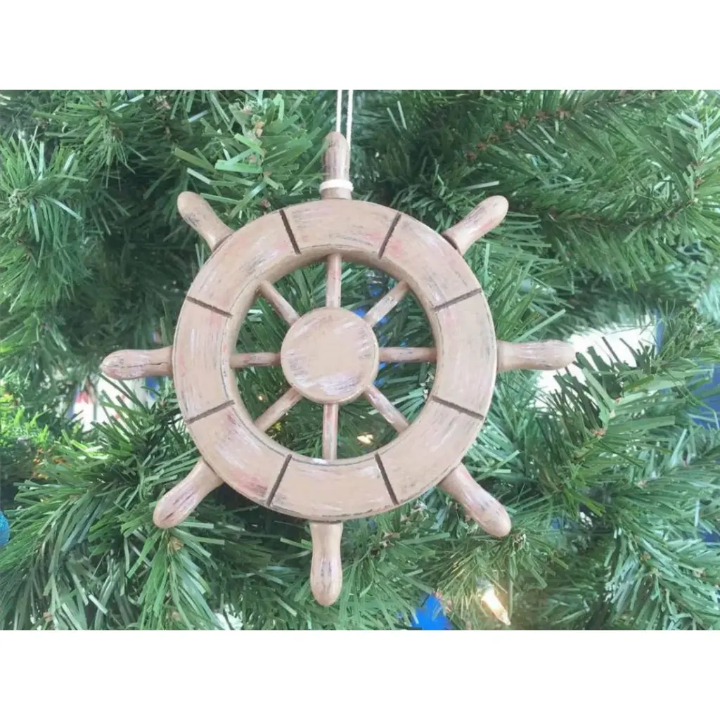 Nautical 36" Ship's Wheel Wall Art, White Wood Sailing Yacht
