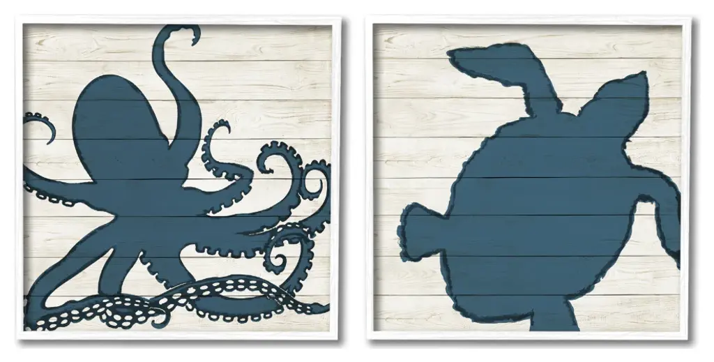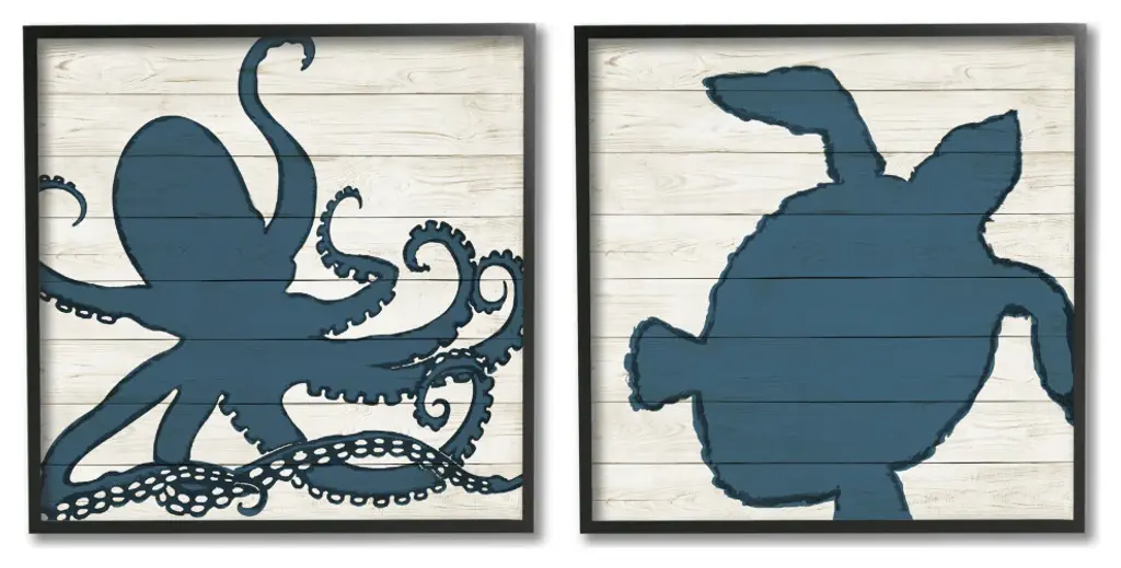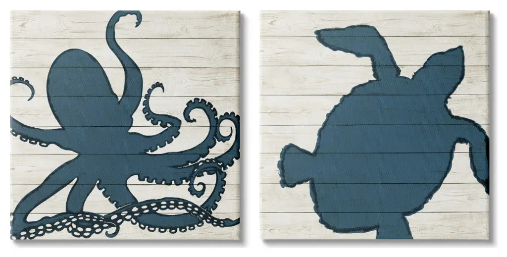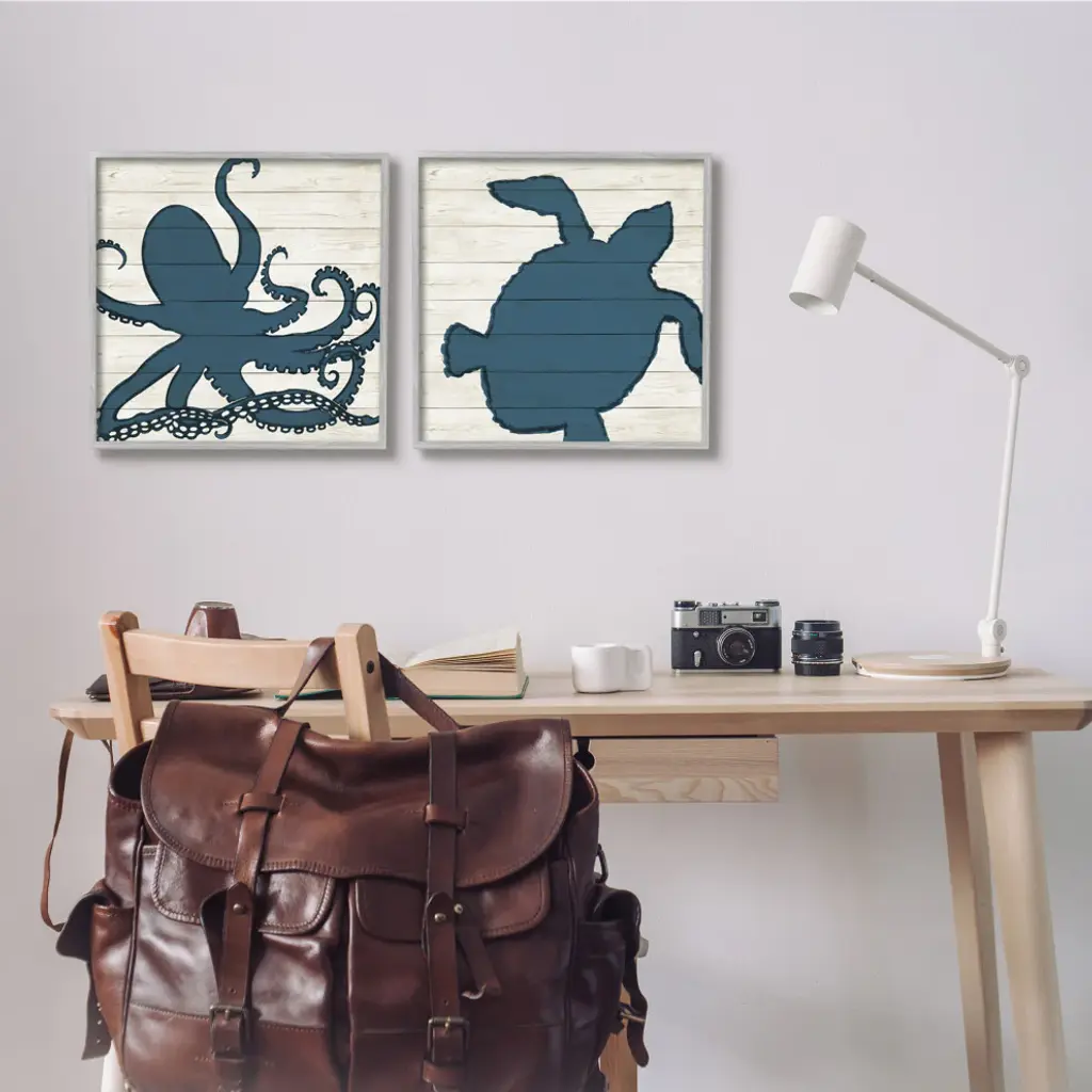 Nautical Blue Silhouette Octopus Sea Turtle Aquatic Animals,17 X 17