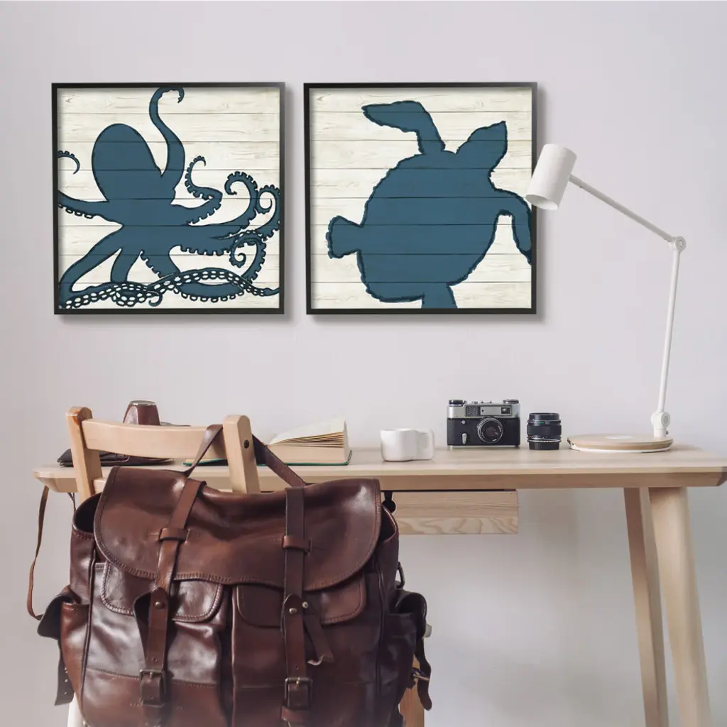 Nautical Blue Silhouette Octopus Sea Turtle Aquatic Animals,24 X 24