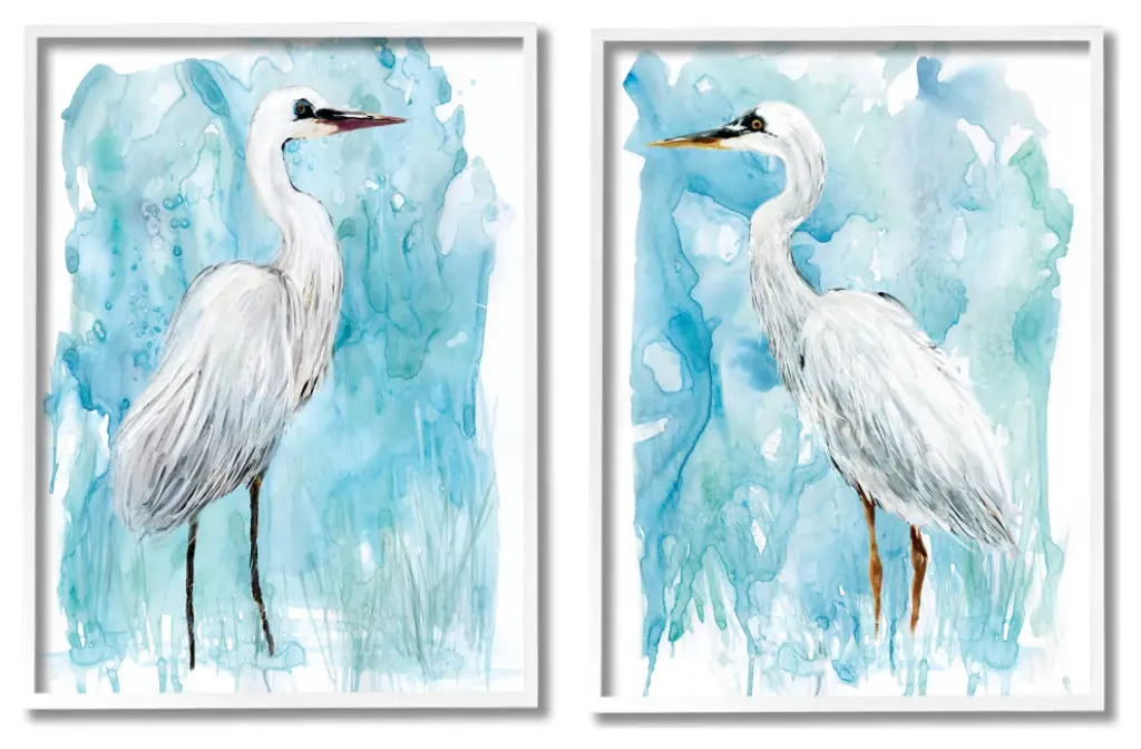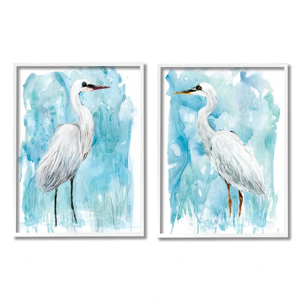 Nautical Crane Pair White Beach Birds Blue Sky,24 X 30