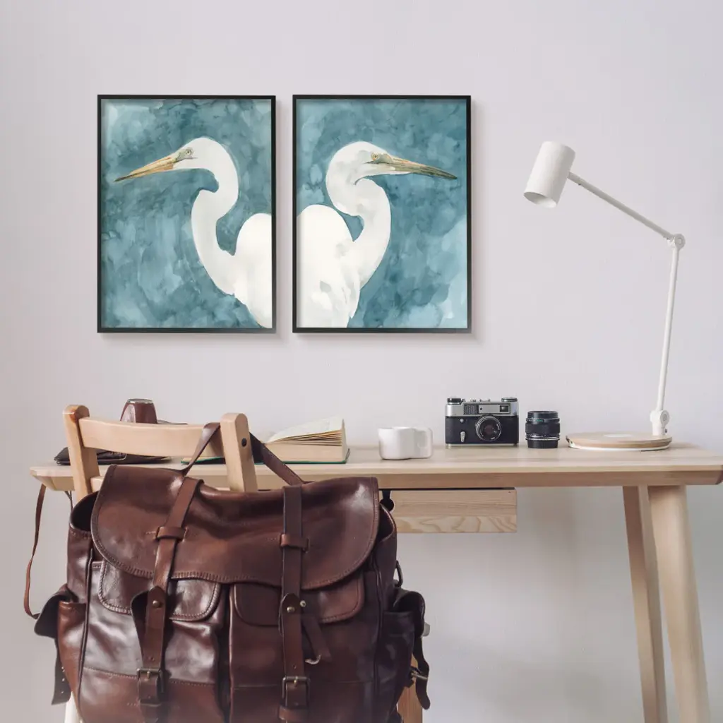 Nautical Cranes Bird Portraits Abstract Blue Sky,16 X 20