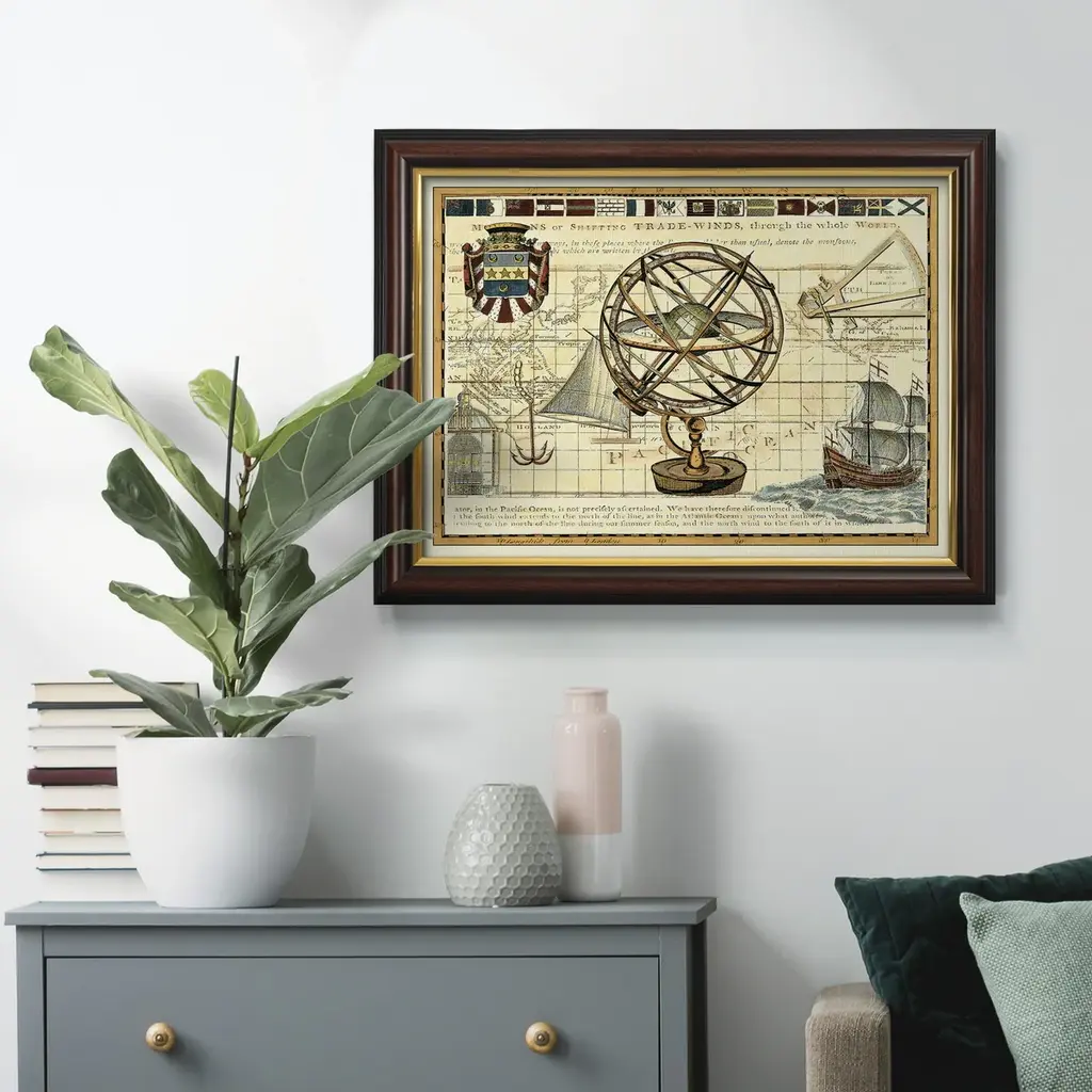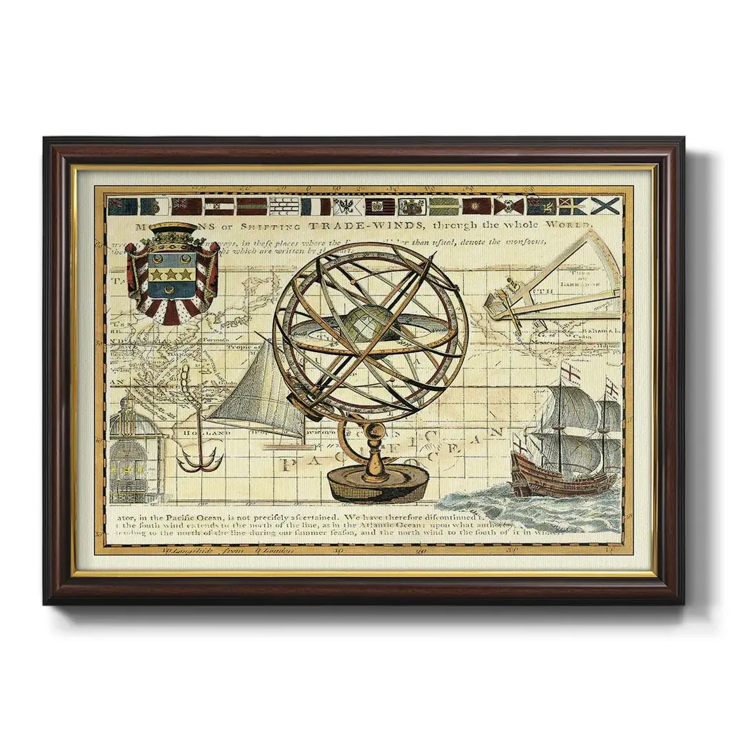Nautical Map I Premium Framed Canvas- Ready to Hang A Premium Framed Canvas created to last. Framed in distressed wood and available in an array of sizes and colors Featuring a beveled a solid wood stretcher bar, each piece comes ready to hand 3 SIZES AVAILABLE 16''X20'' - Overall Size 18'X27'' - Overall Size 24''x36'' - Overall Size Each piece is made to order. Each piece comes with hanging hardware. Made in the USA Ready to Hang Giclee Paper Print Acrylic Glass Beveled Matt Board