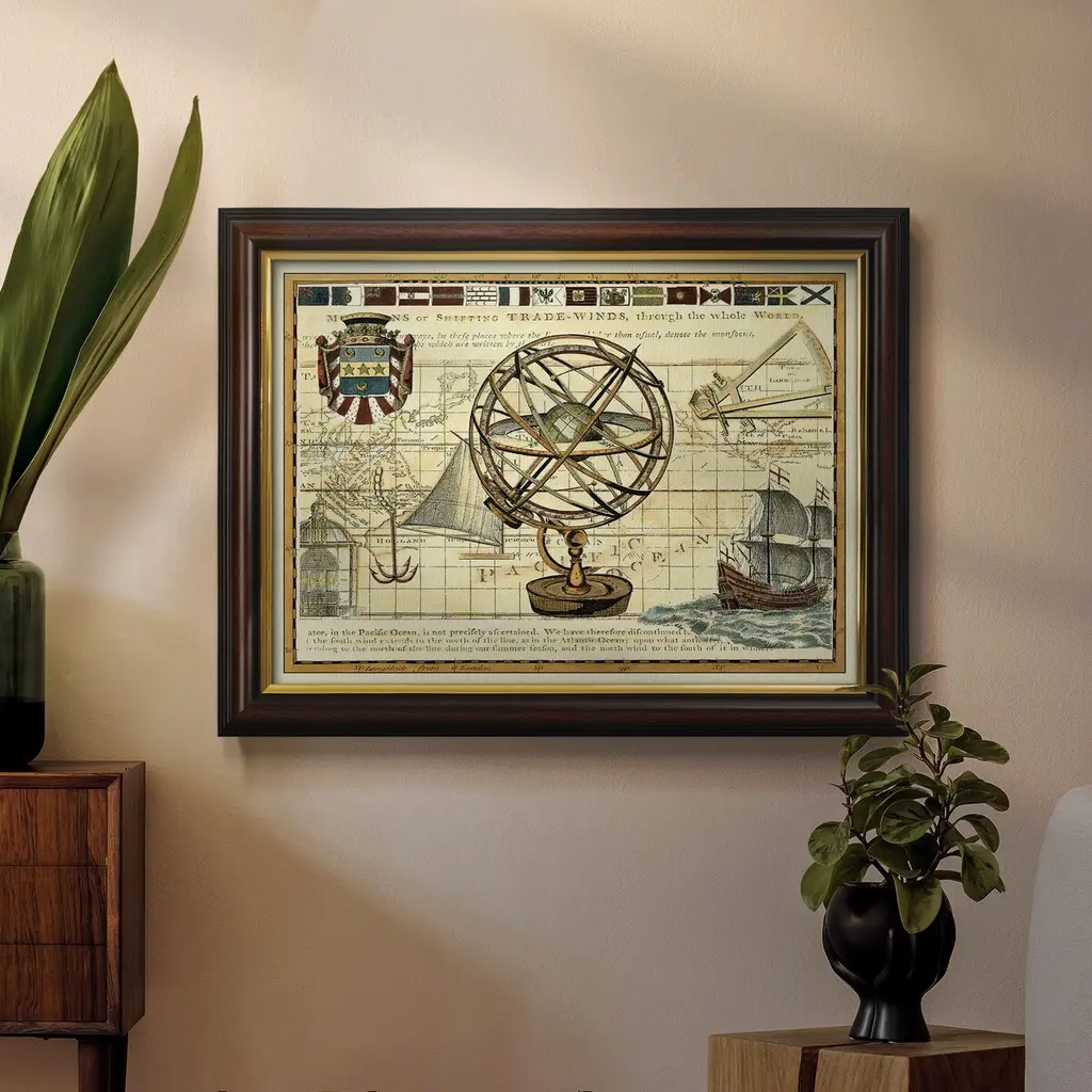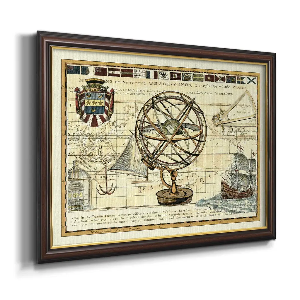 Nautical Map I Premium Framed Canvas- Ready to Hang A Premium Framed Canvas created to last. Framed in distressed wood and available in an array of sizes and colors Featuring a beveled a solid wood stretcher bar, each piece comes ready to hand 3 SIZES AVAILABLE 16''X20'' - Overall Size 18'X27'' - Overall Size 24''x36'' - Overall Size Each piece is made to order. Each piece comes with hanging hardware. Made in the USA Ready to Hang Giclee Paper Print Acrylic Glass Beveled Matt Board