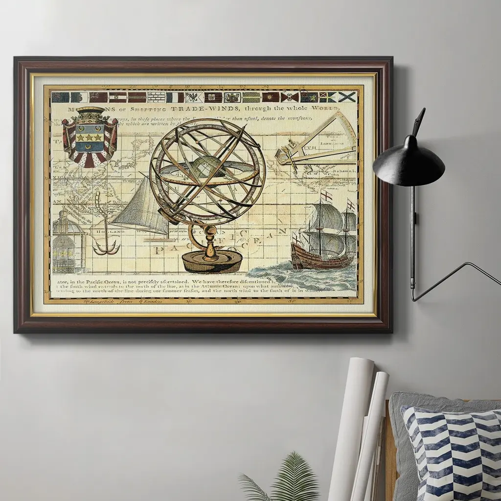 Nautical Map Ii Premium Framed Canvas- Ready To Hang - 16x20 - Mahogany