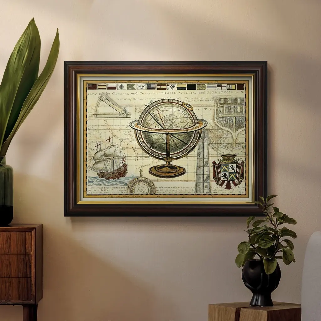 Nautical Map II Premium Framed Canvas- Ready to Hang A Premium Framed Canvas created to last. Framed in distressed wood and available in an array of sizes and colors Featuring a beveled a solid wood stretcher bar, each piece comes ready to hand 3 SIZES AVAILABLE 16''X20'' - Overall Size 18'X27'' - Overall Size 24''x36'' - Overall Size Each piece is made to order. Each piece comes with hanging hardware. Made in the USA Ready to Hang Giclee Paper Print Acrylic Glass Beveled Matt Board