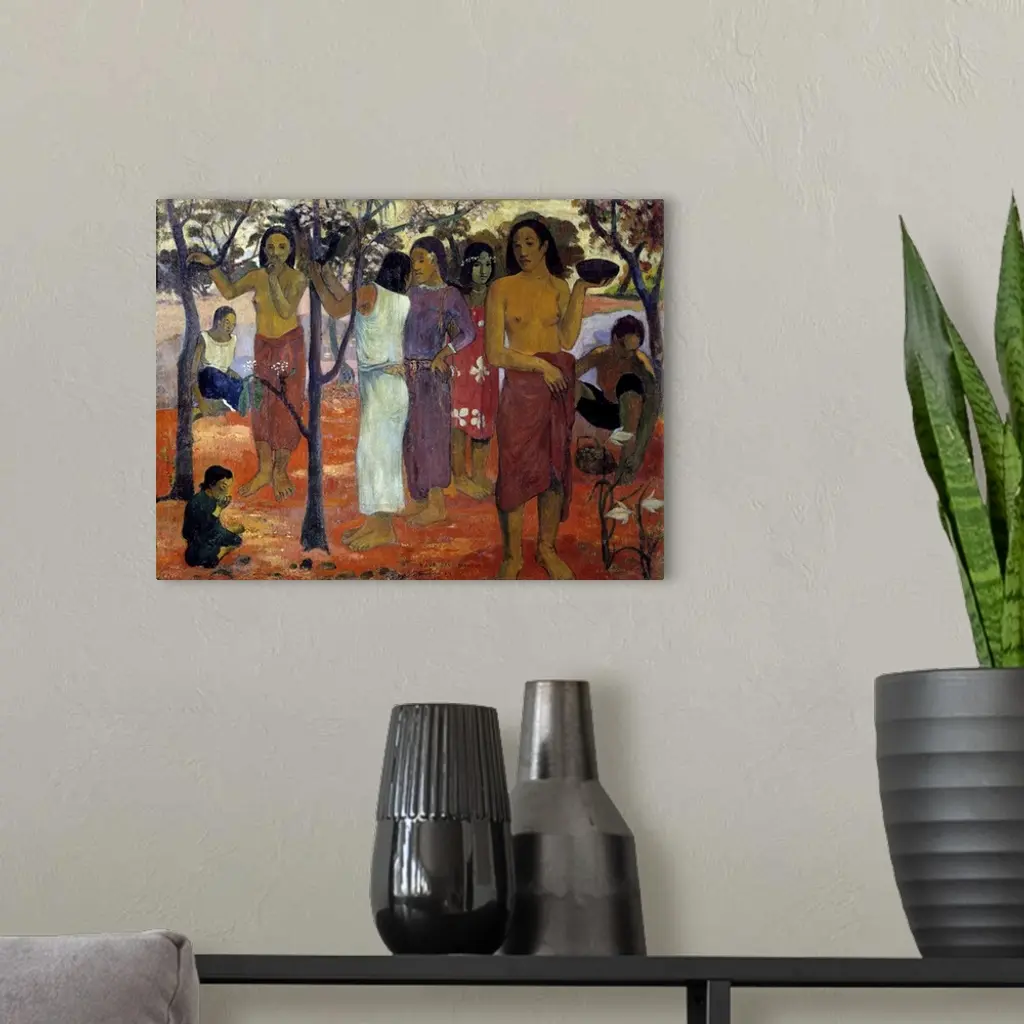 Nave Nave Mahana also known as "Delicious Day". A group of Tahitian women in a garden. Painting by Paul Gauguin (1848-1903), 1896. Beaux-Arts Museum, Lyon, France.