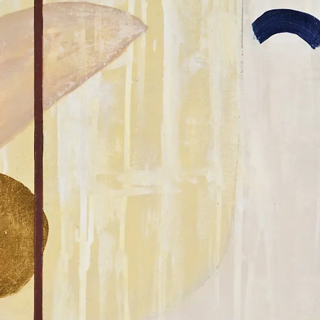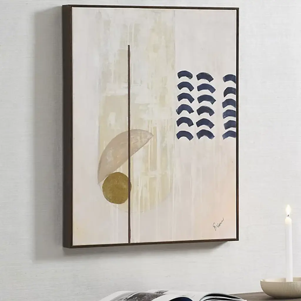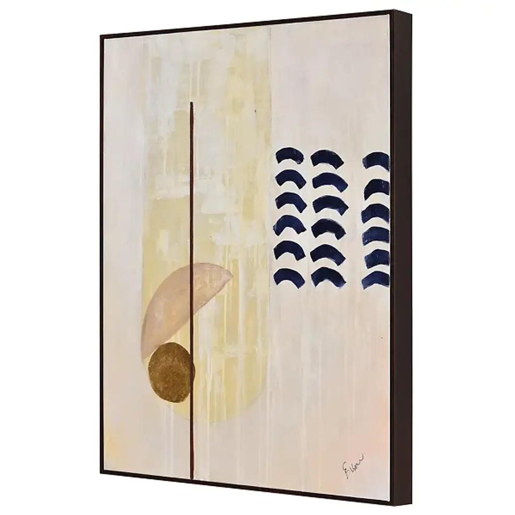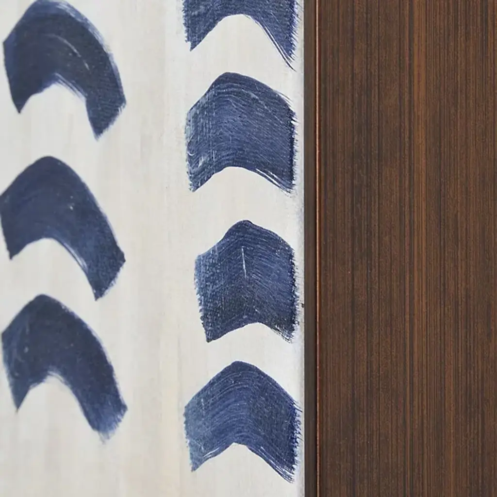 Mid-century modern character emerges through the textured vision of Navi Canvas Art from Renwil. Abstract hand-painted navy textures accented by gold foil create layered, serene depth. Framed in warm, dark brown wood, the cotton canvas balances arresting embellishments with calm curves, lending artisanal intrigue and contemporary directness to indoor walls.