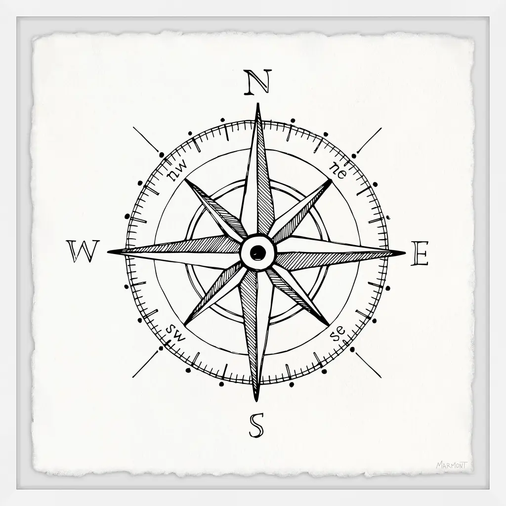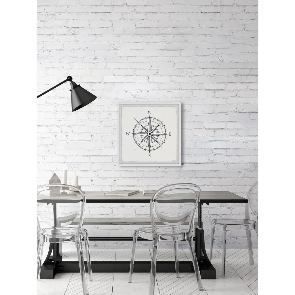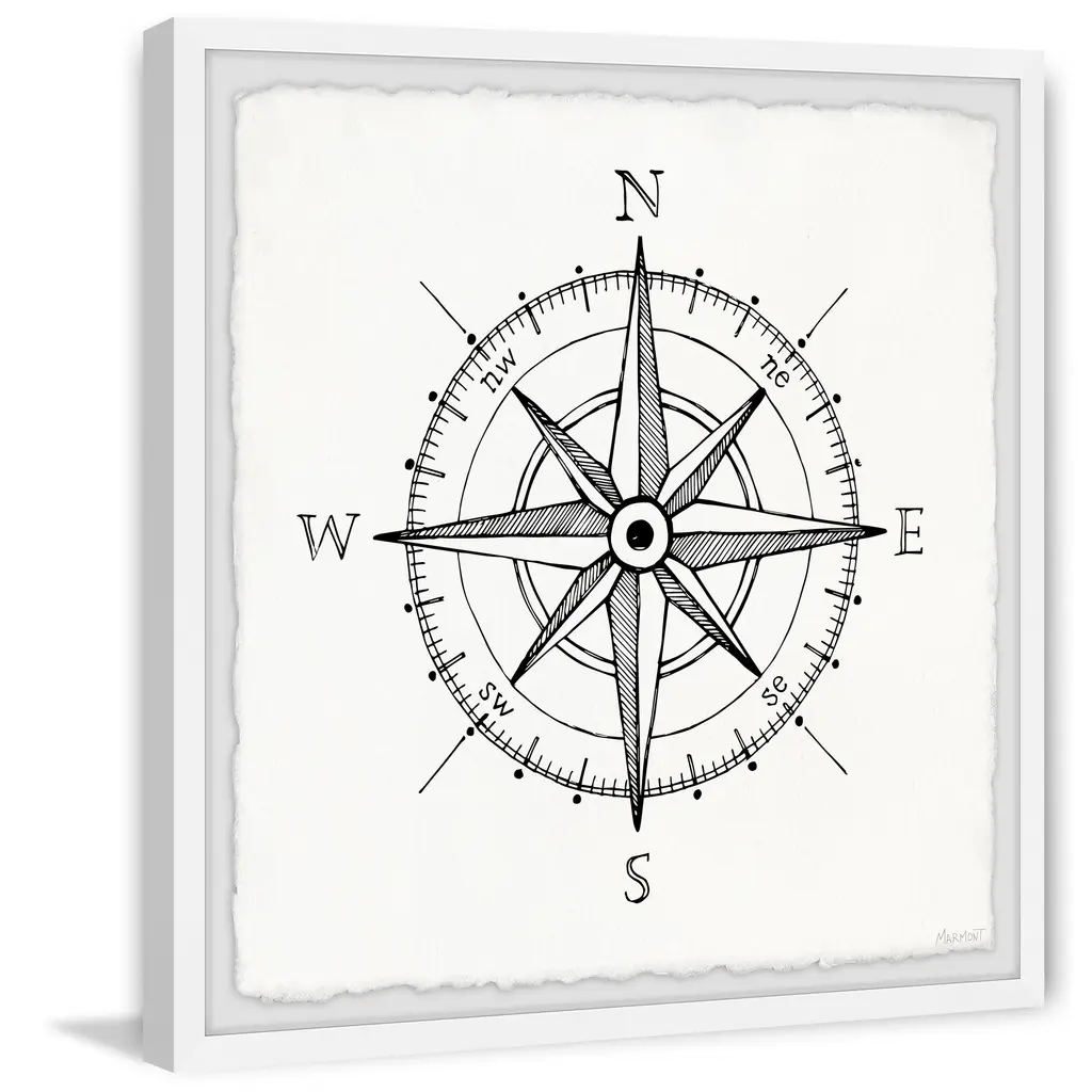Whether you're striving for a bohemian or nautical interior style, this print is the perfect pick, featuring a black and white classic compass. Proudly printed in the USA, this piece is printed on high quality archive paper and professionally hand-framed. With wall-mounting hooks included, this artful accent is ready to hang up as soon as it reaches your front door. • Top quality Giclee print on high resolution Archive Paper • Hand cut deckled edges • High quality durable non-warping frame • Finished under shatter resistant plexiglass • Arrives ready to hang • Includes a certificate of authenticity • Printed in the USA