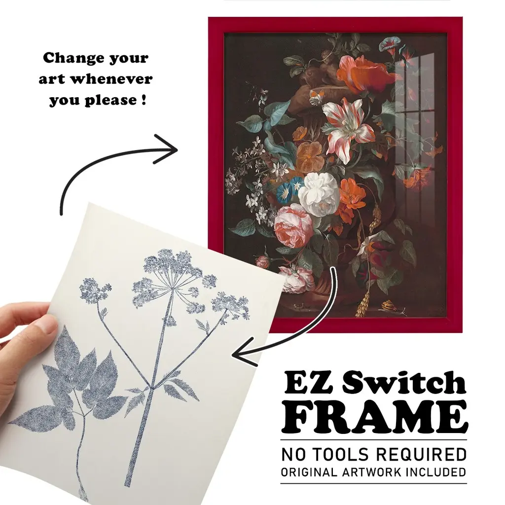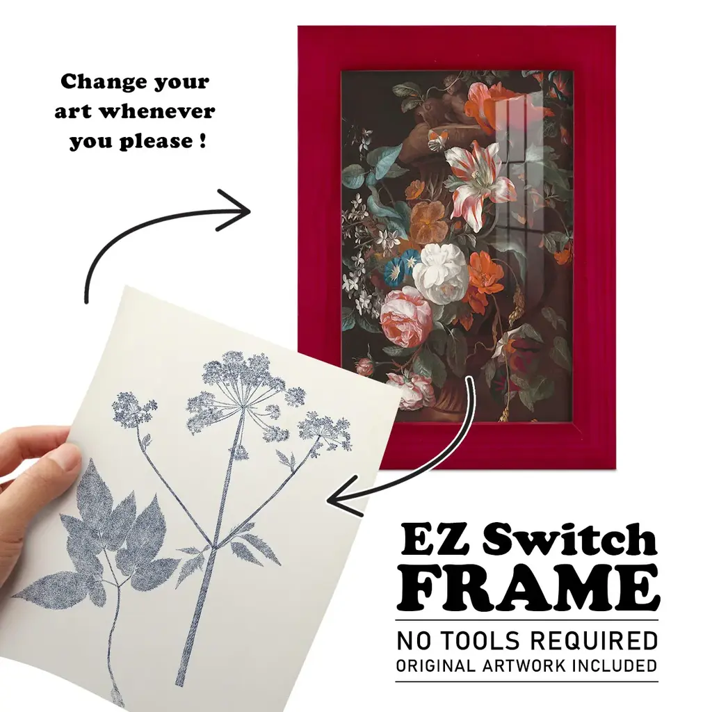 Navy Botanicals IV -EZ SWITCH Framed Print w/glass-Cherry Red A delightful, framed print. Featuring a solid wood frame with real wood glass. This premium print is giclee quality. In addition, every frame features a removable back and table top stand. This allows you to change your art in the future or to just stand the art on a table for a new look. We are sure you'll enjoy our new series of EZ SWITCH Framed Art. Solid Wood Frame Real Glass Removable / Replaceable Art Built in Tabletop Stand Sizes range from 4x6 up to 12x15 - buy just one or pair them up as sets as you see fit.