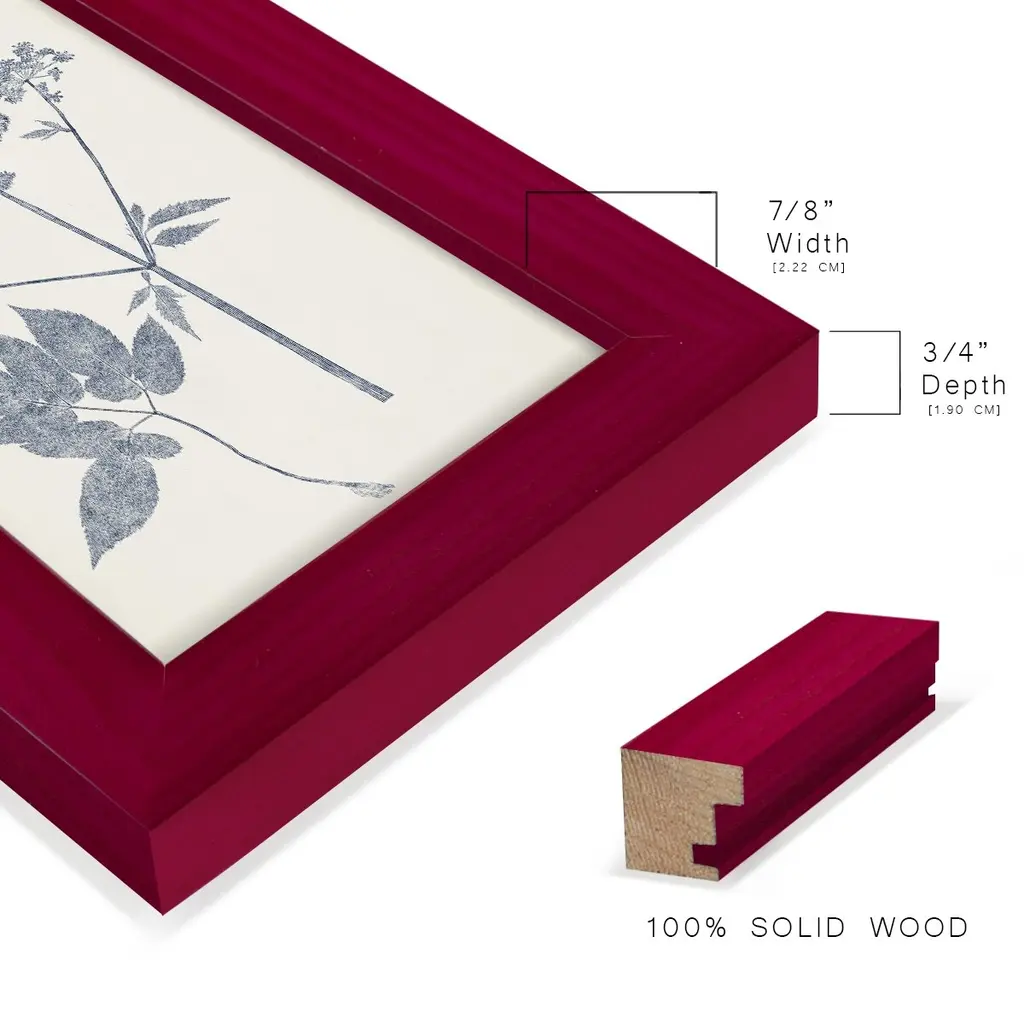Navy Botanicals IV -EZ SWITCH Framed Print w/glass-Cherry Red A delightful, framed print. Featuring a solid wood frame with real wood glass. This premium print is giclee quality. In addition, every frame features a removable back and table top stand. This allows you to change your art in the future or to just stand the art on a table for a new look. We are sure you'll enjoy our new series of EZ SWITCH Framed Art. Solid Wood Frame Real Glass Removable / Replaceable Art Built in Tabletop Stand Sizes range from 4x6 up to 12x15 - buy just one or pair them up as sets as you see fit.