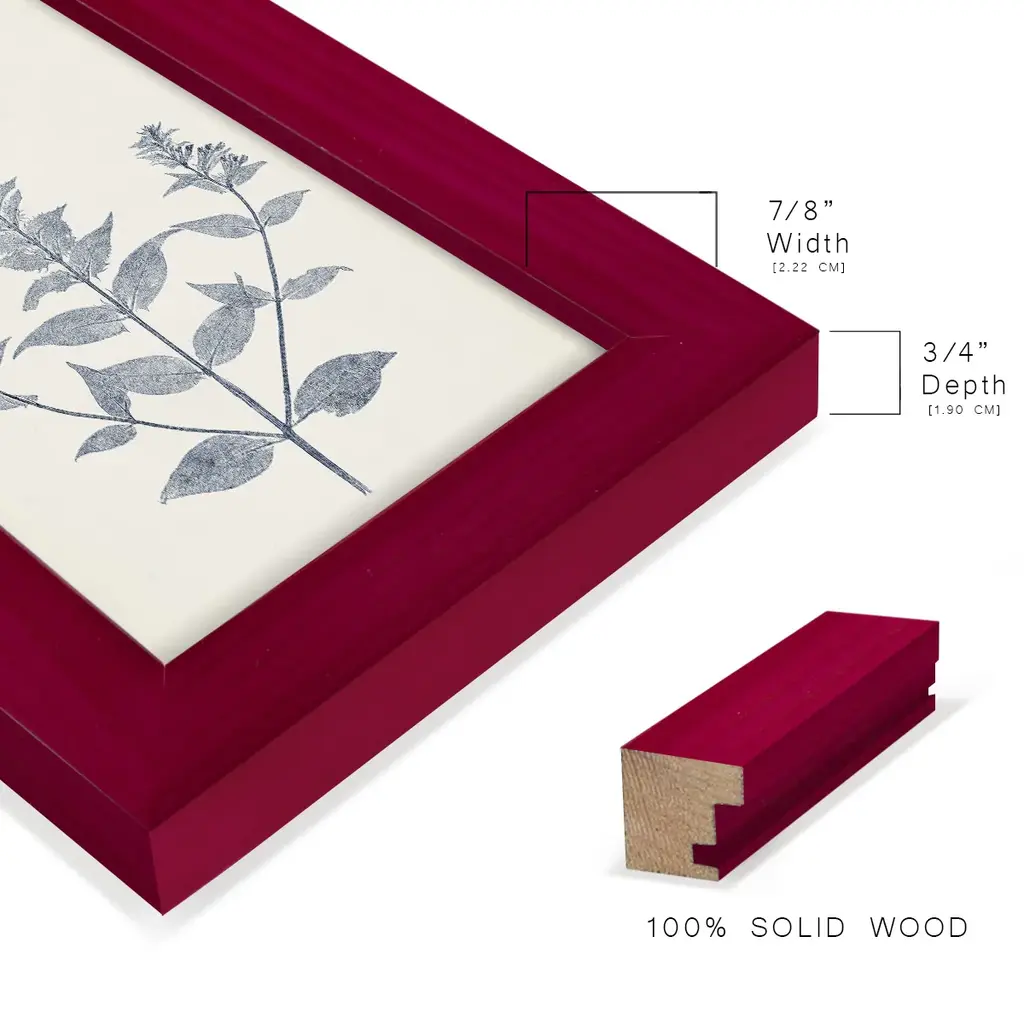 Navy Botanicals VII -EZ SWITCH Framed Print w/glass-Cherry Red A delightful, framed print. Featuring a solid wood frame with real wood glass. This premium print is giclee quality. In addition, every frame features a removable back and table top stand. This allows you to change your art in the future or to just stand the art on a table for a new look. We are sure you'll enjoy our new series of EZ SWITCH Framed Art. Solid Wood Frame Real Glass Removable / Replaceable Art Built in Tabletop Stand Sizes range from 4x6 up to 12x15 - buy just one or pair them up as sets as you see fit.
