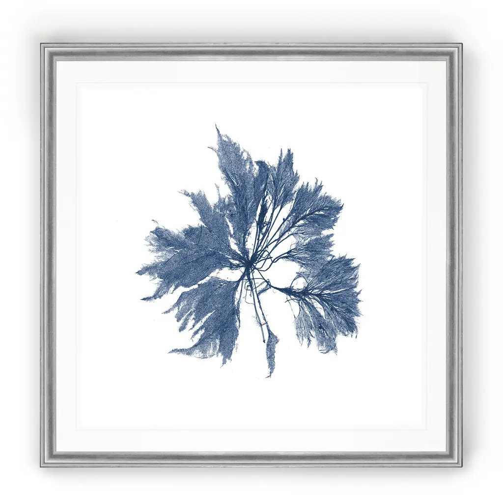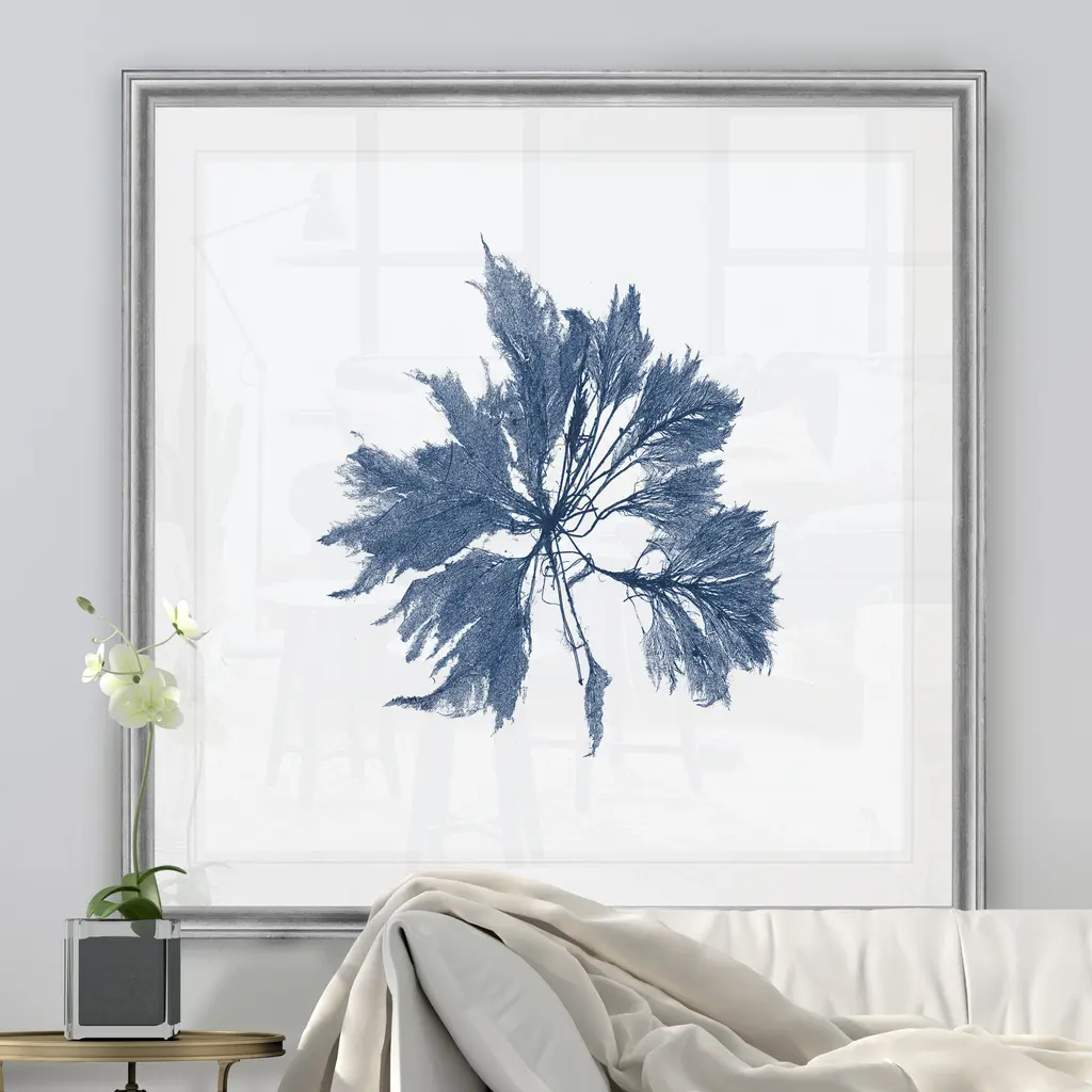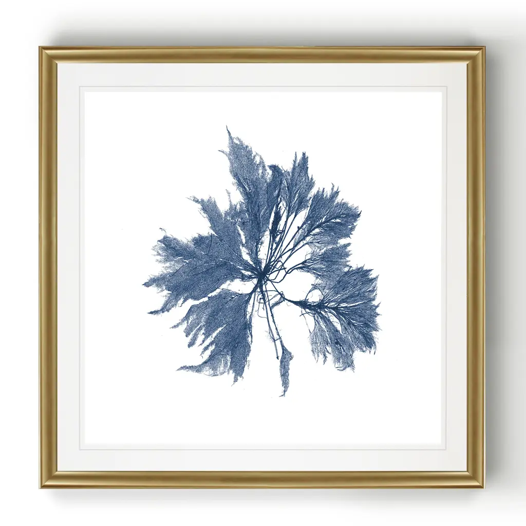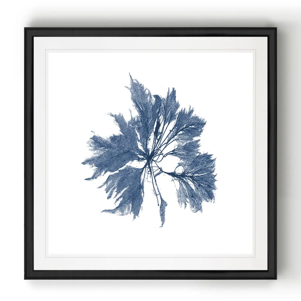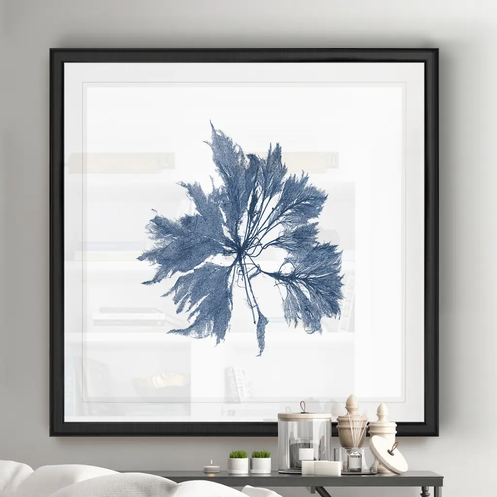 Navy Seaweed I -Black Framed Print A premium Black Framed giclee print Featuring a beveled a matt , acrylic glass, and a high quality giclee print 5 SIZES AVAILABLE 34''x34''- Overall Size 30''x30'' - Overall Size 26''x26''' - Overall Size 22''x22''' - Overall Size 18''x18''' - Overall Size Each piece is made to order. Built to Last Each piece comes ready to hang Fade and Water resistant Made domestically
