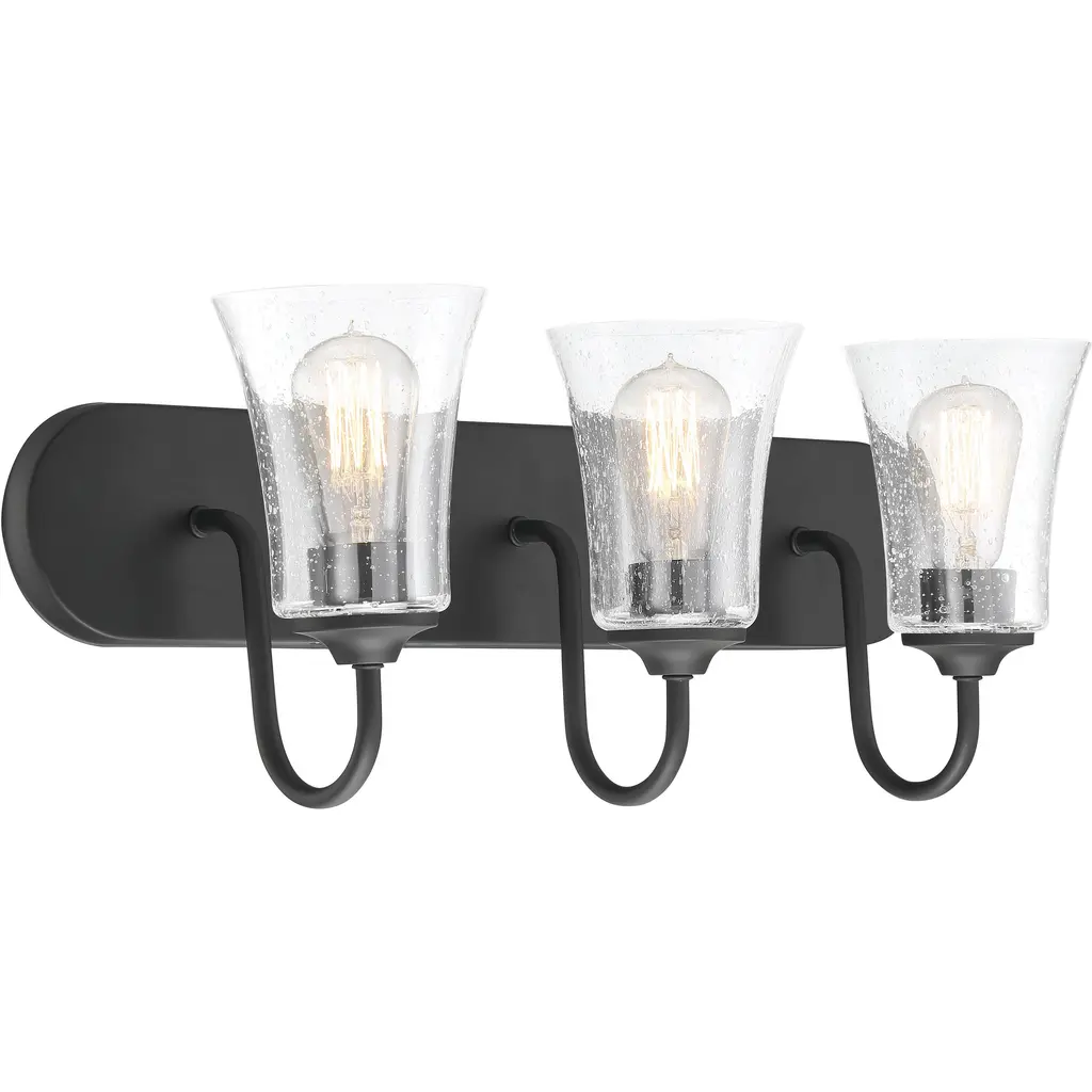 Neighborhood Gwyneth 3 Light 24 Inch Flat Black Vanity Light Wall Light In Clear Seeded, Neighborhood Collection