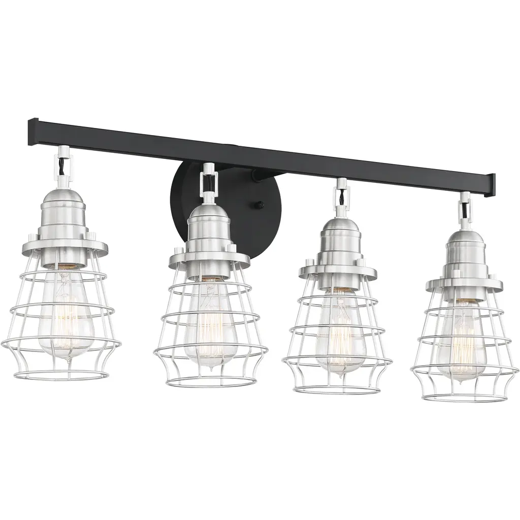 Neighborhood Thatcher 4 Light 26 Inch Flat Black/satin Brass Vanity Light Wall Light In Flat Black And Satin Brass, Neighborhood Collection
