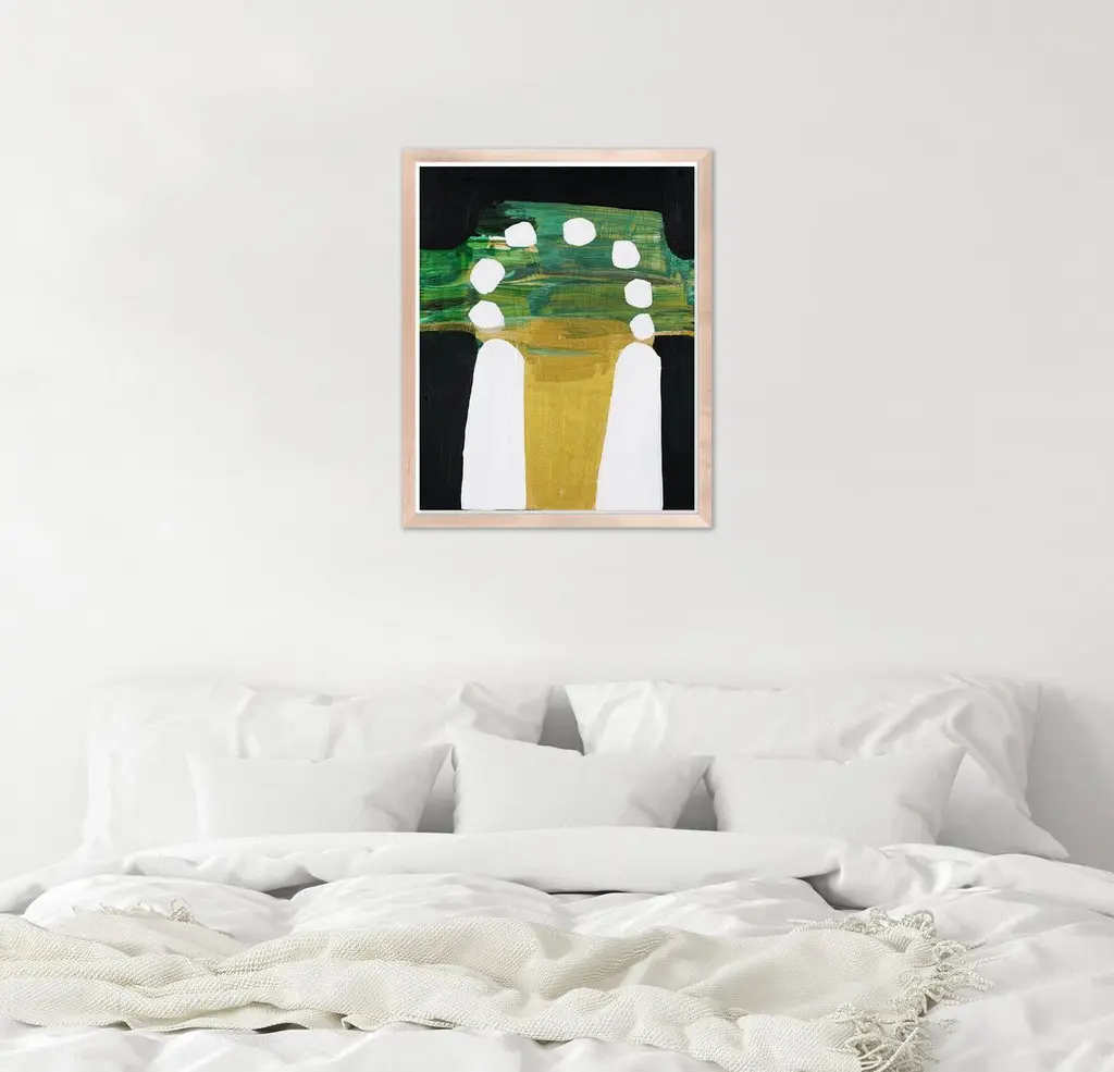 This abstraction from Nell Waters Bernegger is defined by its bold color contrast and thoughtful composition. Printed on gallery-wrapped canvas and displayed in a pine floater frame, this piece arrives ready to hang.Nell Waters Bernegger explores the physicality of paint as relationships between washes of color and form develop, ultimately resulting in compositions that show how stillness and activity coexist. Through painting, she aspires to illuminate themes on autonomy and the weight and lightness of being. Nell studied at Parsons New School of Design, the San Francisco Academy of Art, and earned a BFA in painting from SUNY Purchase. In addition to painting in her studio and being a mom, she provides therapeutic arts for patients at Yale-New Haven Hospital.