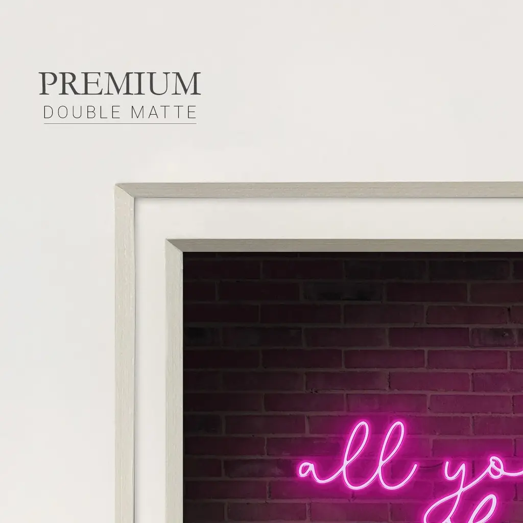 Neon Love IPremium Framed Print A framed cold pressed paper print featuring superior double matting and quality frame. 2 SIZES AVAILABLE 16''X16''' - Overall Size 20''X20''' - Overall Size Each piece is made to order. Each piece comes with hanging hardware. Made in the USA Ready to Hang Giclee Paper Print Plexiglass Beveled Matt Board Double Matte Board