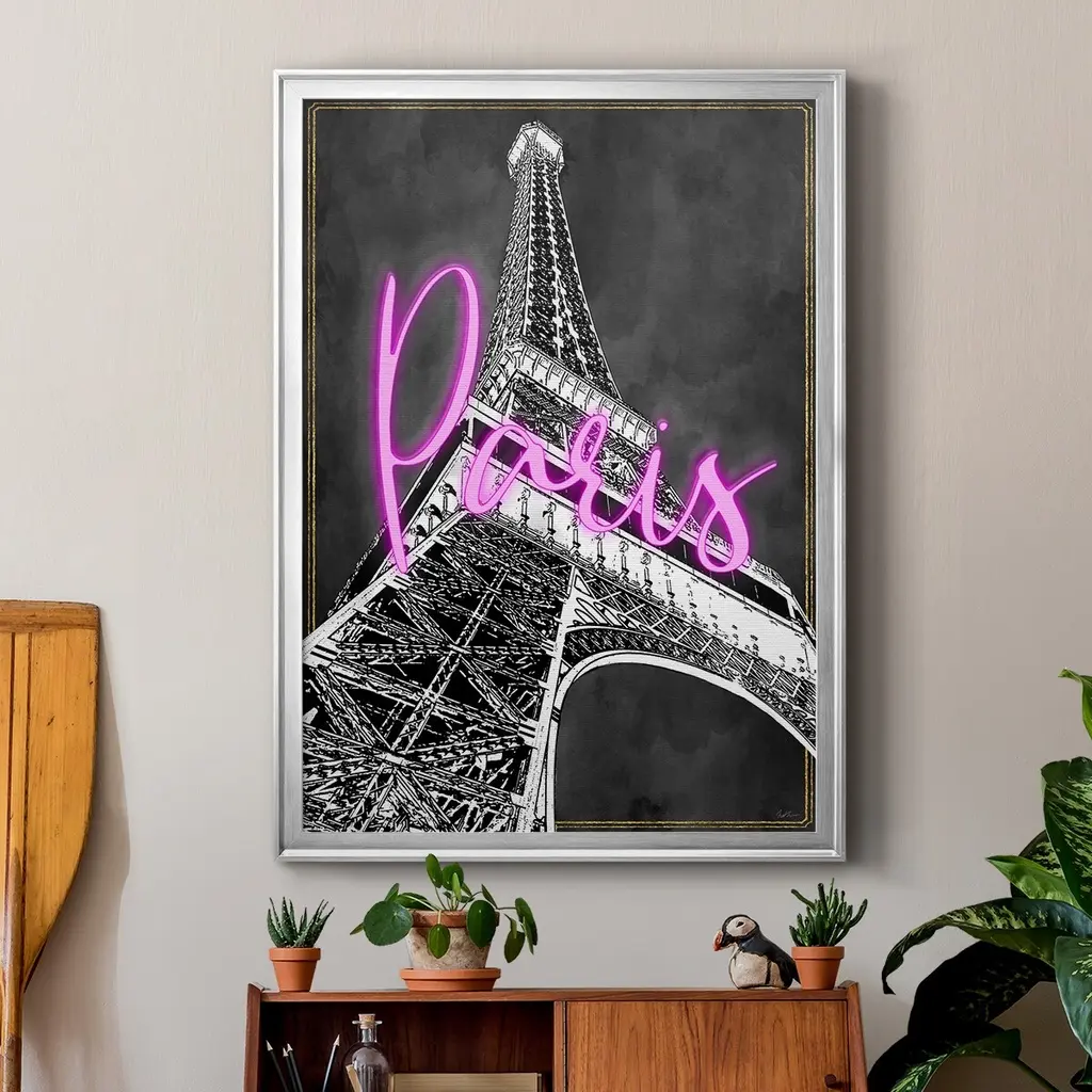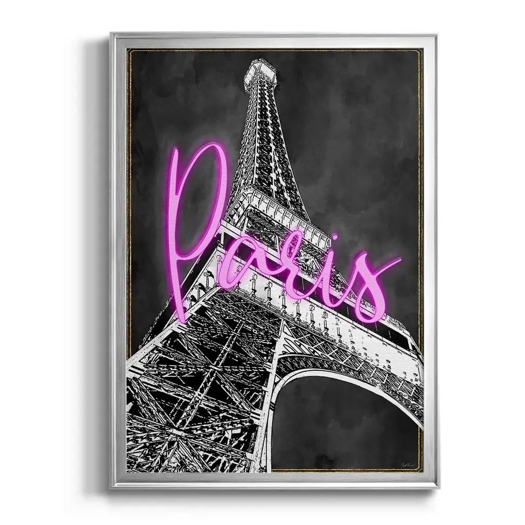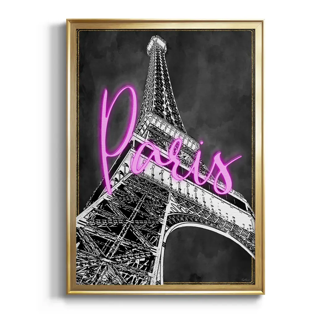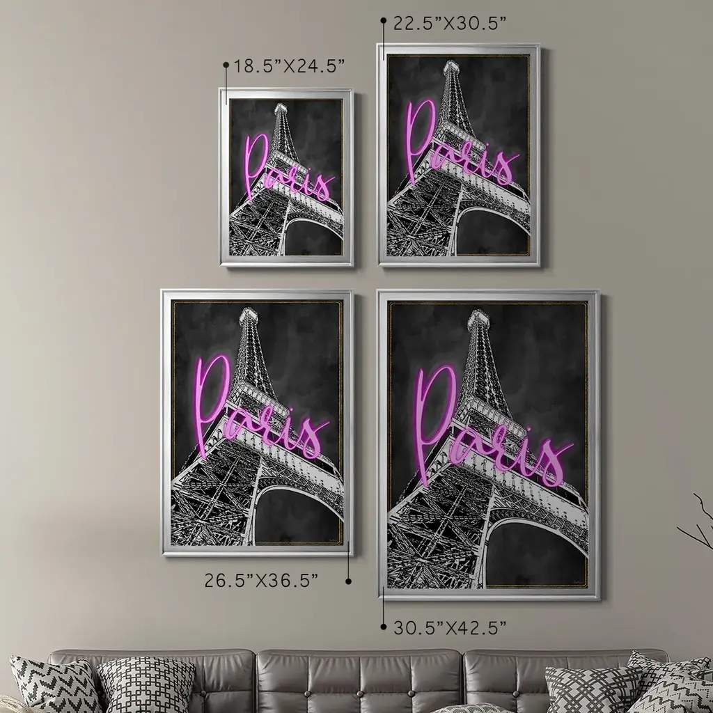 Neon Nights In Paris Premium Framed Print - Ready to Hang A Premium Framed Print created to last. Framed in distressed wood and available in an array of sizes and colors Featuring a beveled a solid wood stretcher bar, each piece comes ready to hand 4 SIZES AVAILABLE 30.5''X42.5'' - Overall Size 26.5'X36.5'' - Overall Size 22.5''x30.5'' - Overall Size 18.5''x24.5'' - Overall Size Each piece is made to order. Each piece comes with hanging hardware. Made in the USA Ready to Hang