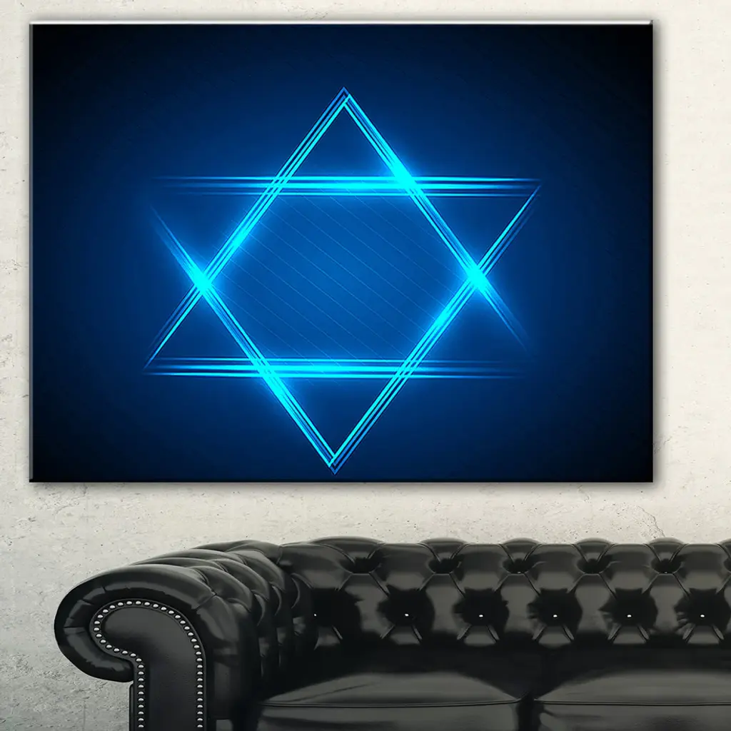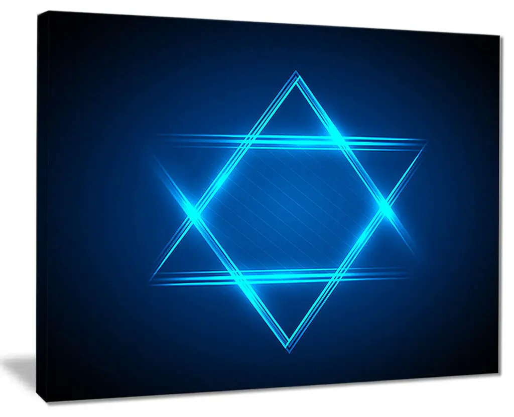 The Neon Star of David canvas art print is sure to make an impression on anyone who sees it. This artwork is gallery wrapped around a 1-inch solid wood frame and arrives carefully packaged and entirely ready to hang on the wall. Design Art only uses the highest resolution and pigments to ensure a crisp colorful print that is never faded or pixelated. This artwork is sure to be a conversation starter in any home or office.