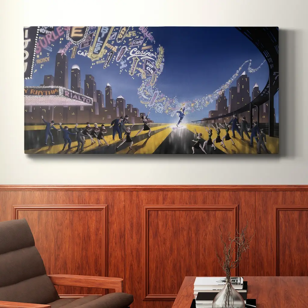 Neon Symphony- Premium Gallery Wrapped Canvas - Ready to Hang A premium hand stretched gallery wrapped canvas print created to last. Featuring a beveled a solid wood stretcher bar, each piece comes ready to hand 3 SIZES AVAILABLE 8''X16'' - Overall Size 12"X24'' - Overall Size 20''x40'' - Overall Size Each piece is made to order. Built to Last Each piece comes ready to hang Solid wood stretcher Fade and Water resistant Made domestically