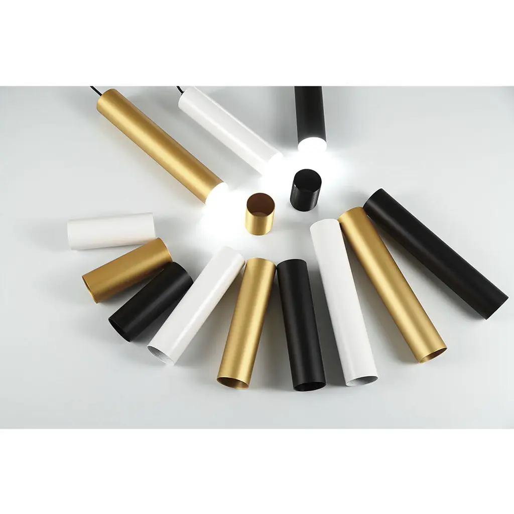 This remarkable custom fixture allows for multiple configurations of LED tubes. The ridged anodized aluminum joiners connect the different extensions in your choice of white, black or gold. Weave the LED light through your tailor-made pendant for a fully functional art piece.