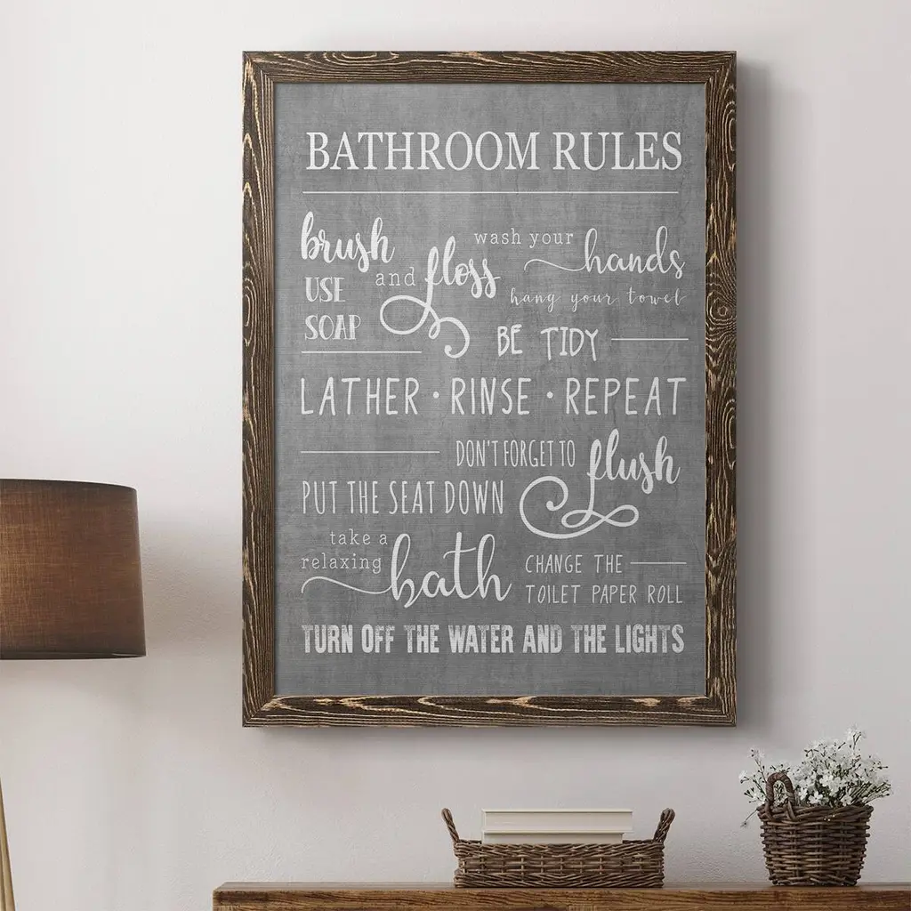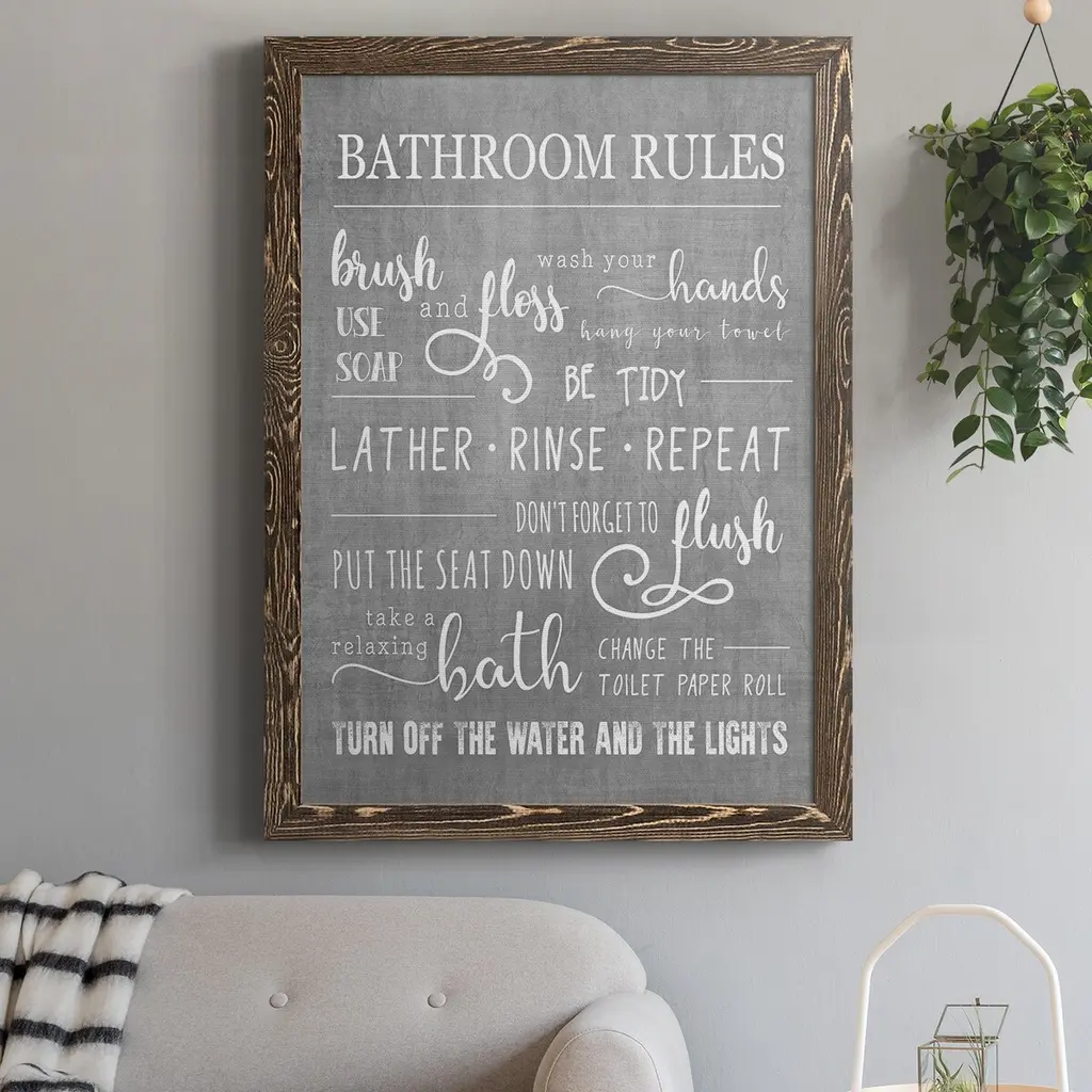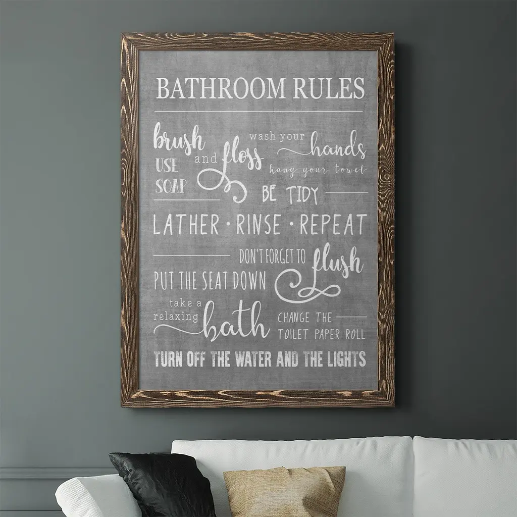 Neutral Bathroom Rules-Premium Framed Canvas - Ready To Hang - 27.5x37.5 - Grey