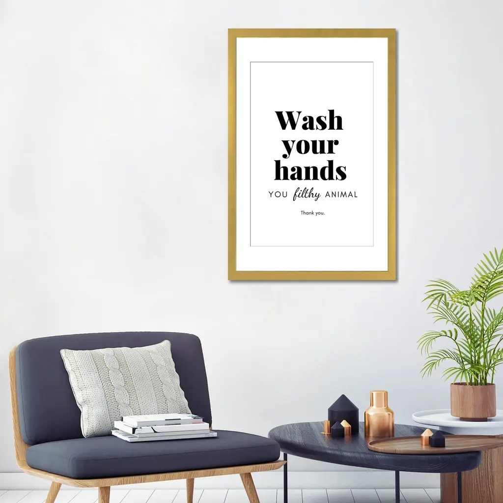 Neutral Bathroom Rules-Premium Framed Canvas - Ready To Hang - 27.5x37.5 - Maple