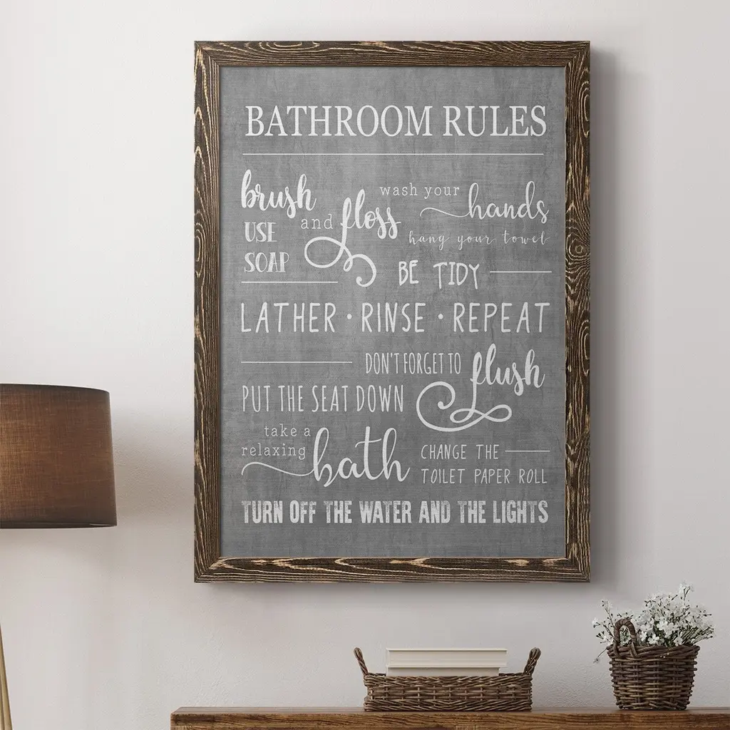 Neutral Bathroom Rules-Premium Framed Canvas - Ready To Hang - 27.5x37.5 - White