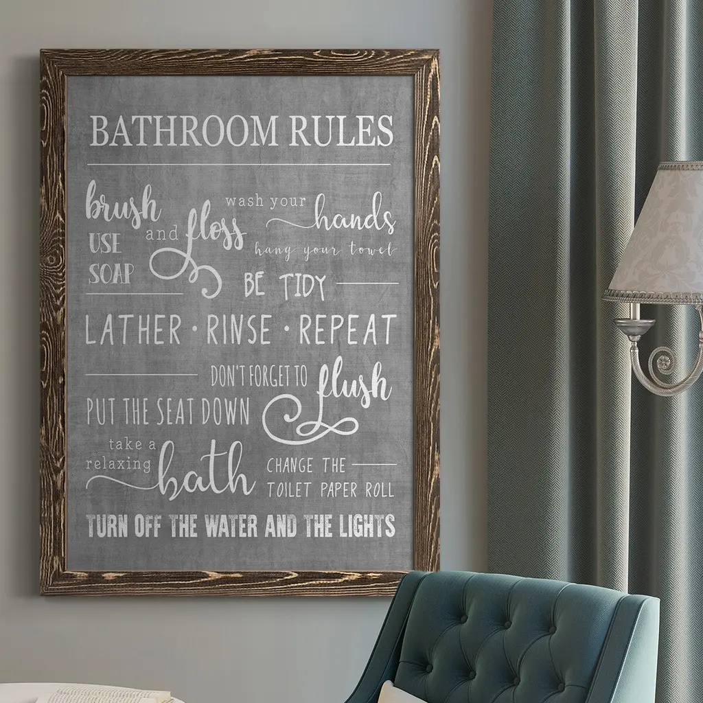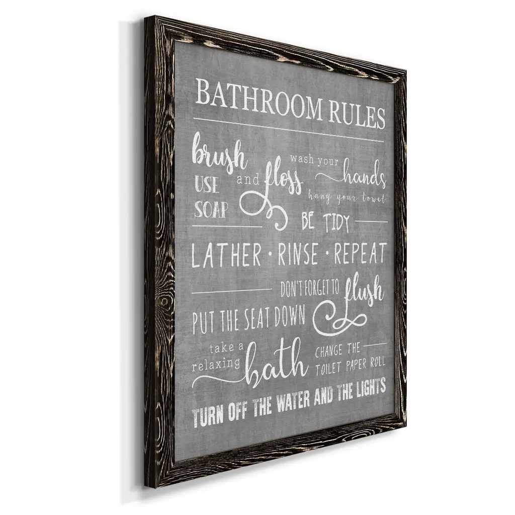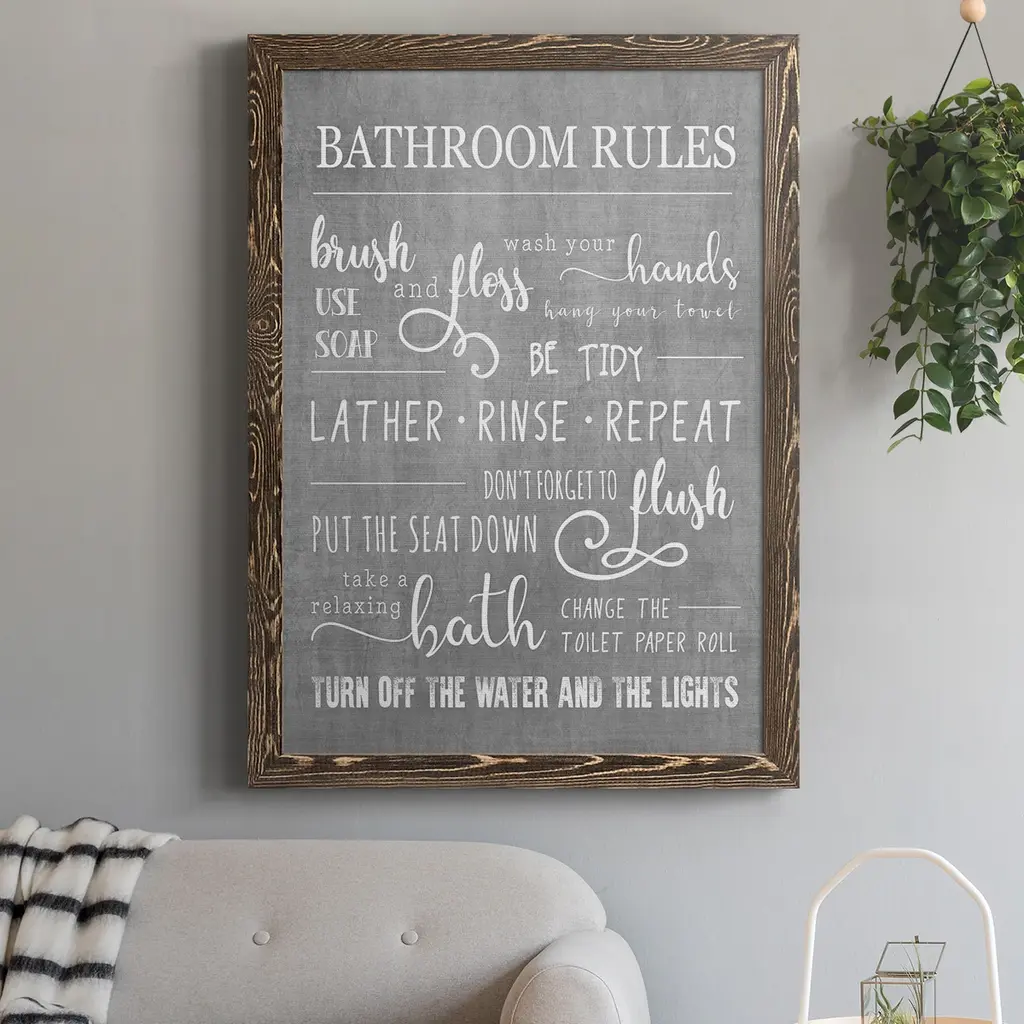 Neutral Bathroom Rules-Premium Framed Canvas - Ready To Hang - 31.5x43.5 - Grey