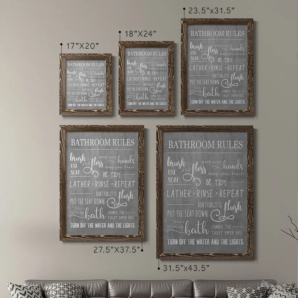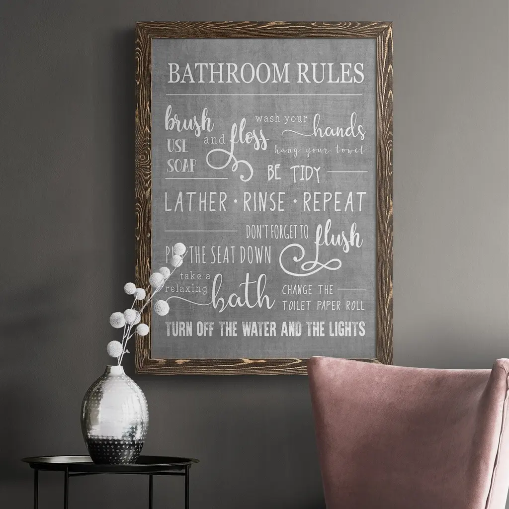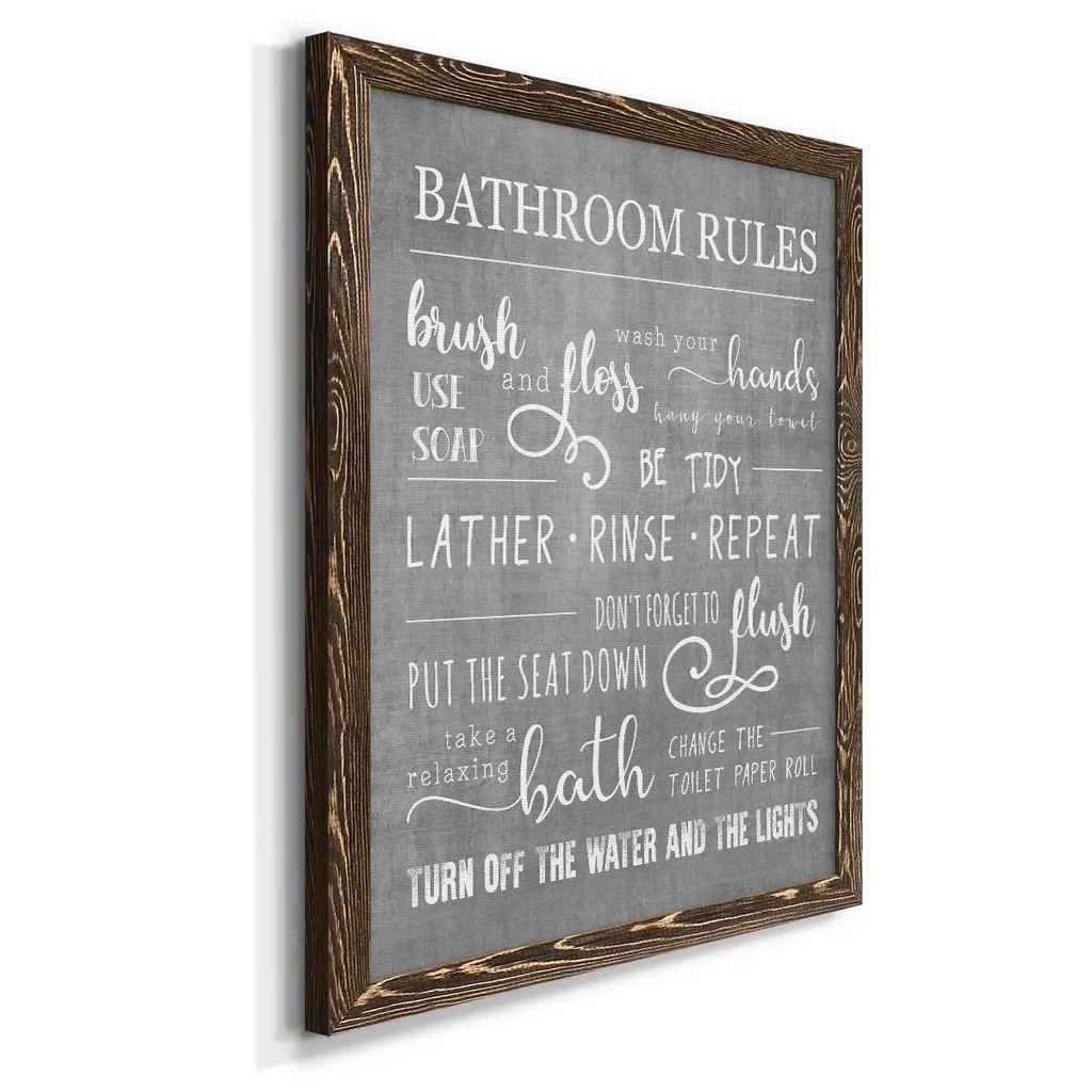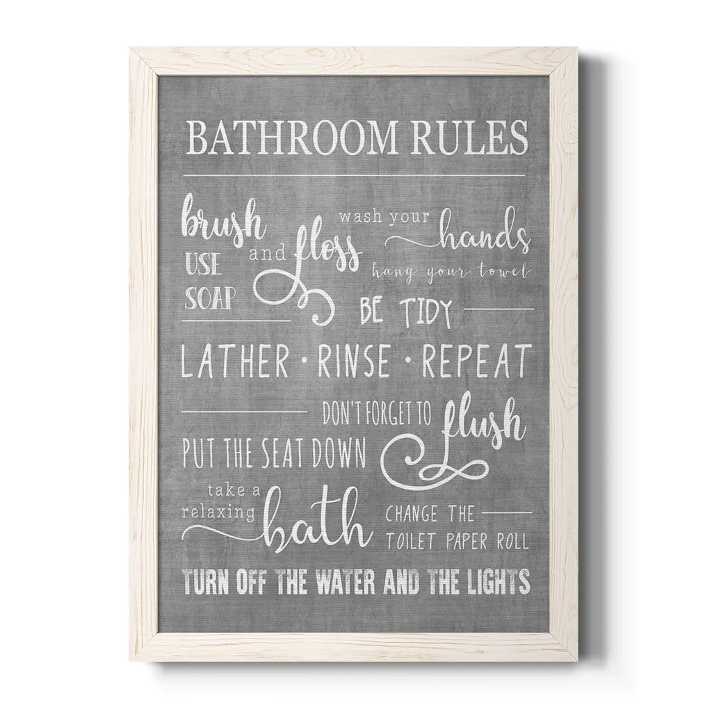Neutral Bathroom Rules-Premium Framed Canvas - Ready To Hang - 31.5x43.5 - White
