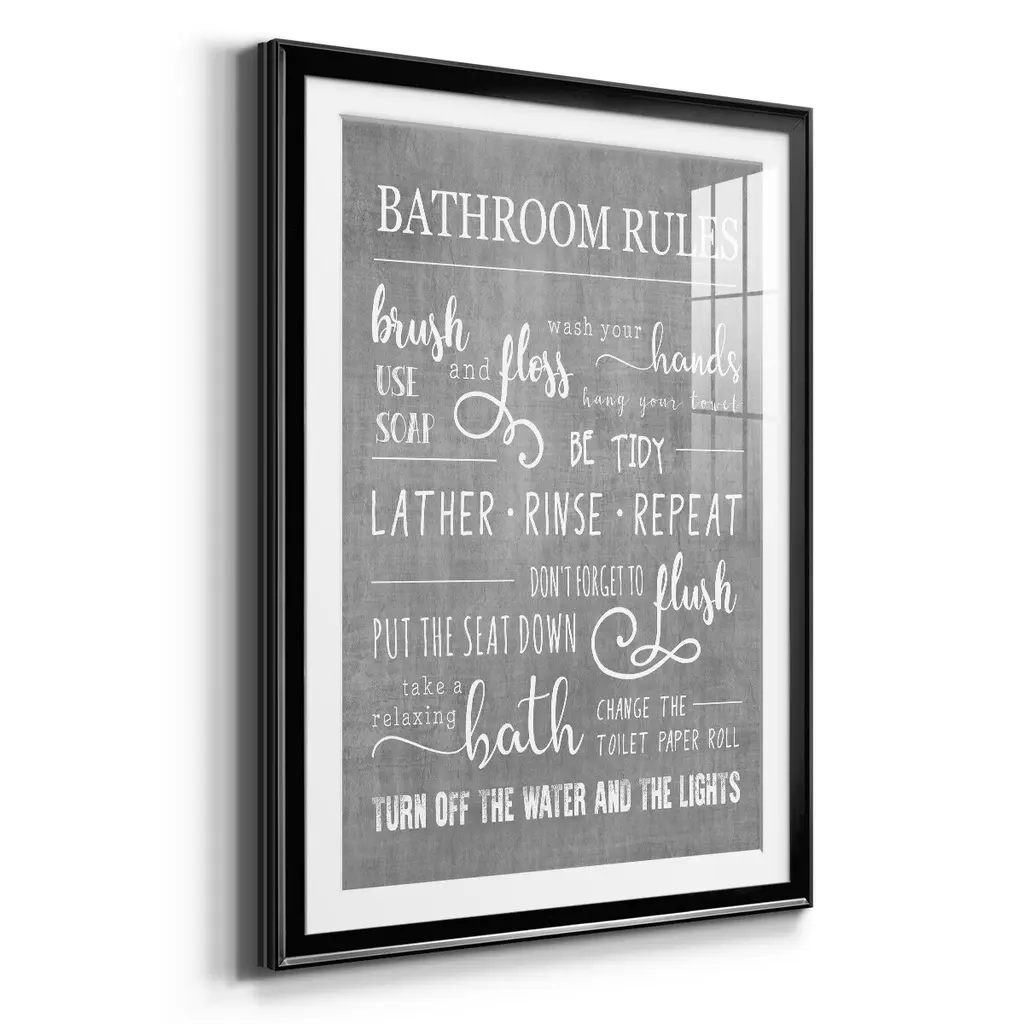 Neutral Bathroom Rules Premium Framed Print - Ready To Hang - 22.5x30.5 - Black