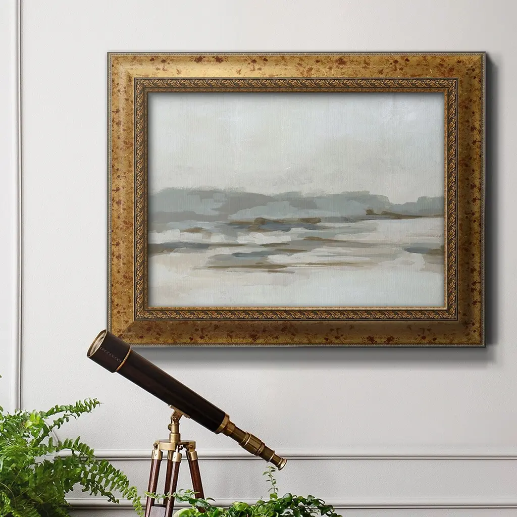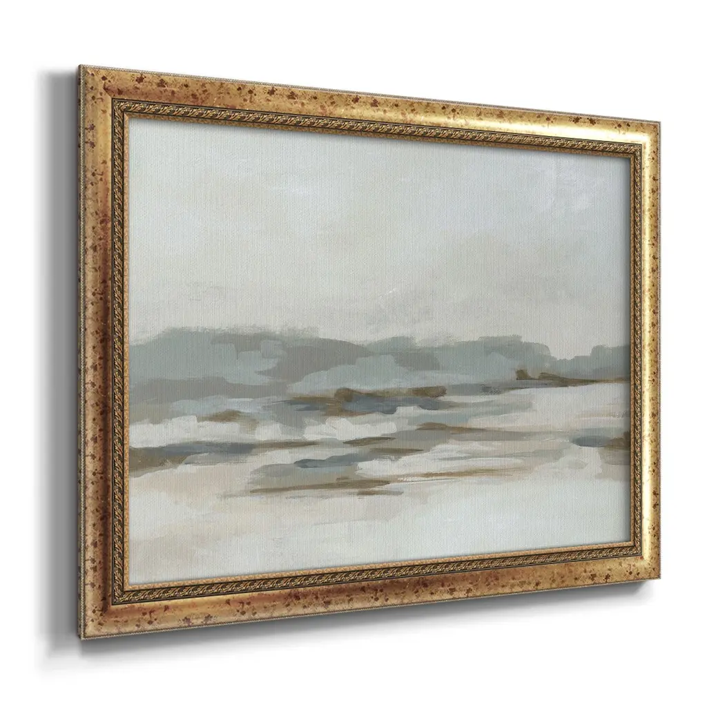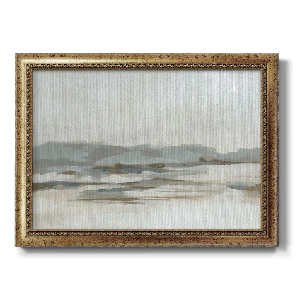 Neutral Coast I Premium Framed Canvas- Ready to Hang A Premium Framed Canvas created to last. Framed in distressed wood and available in an array of sizes and colors Featuring a beveled a solid wood stretcher bar, each piece comes ready to hand 3 SIZES AVAILABLE 16''X20'' - Overall Size 18'X27'' - Overall Size 24''x36'' - Overall Size Each piece is made to order. Each piece comes with hanging hardware. Made in the USA Ready to Hang Giclee Paper Print Acrylic Glass Beveled Matt Board