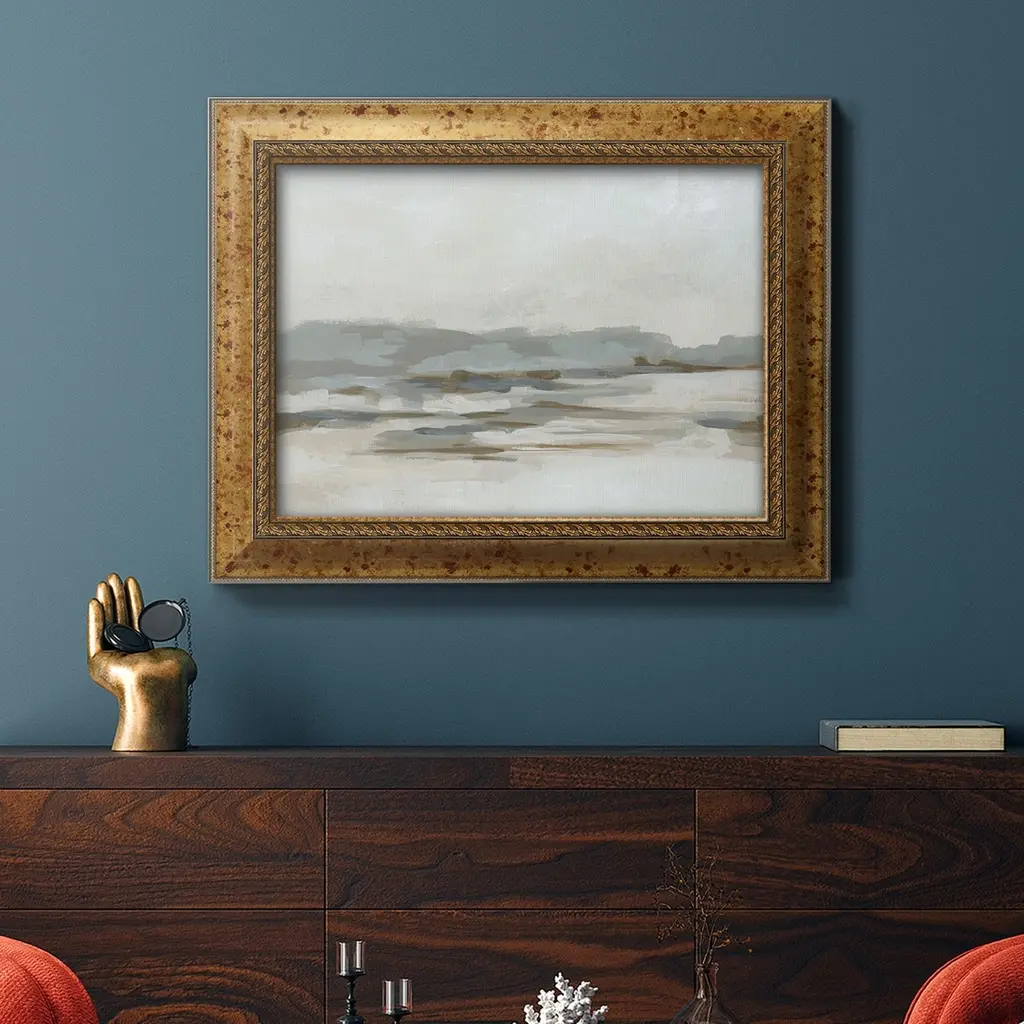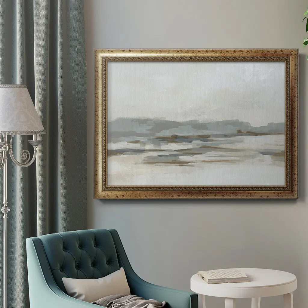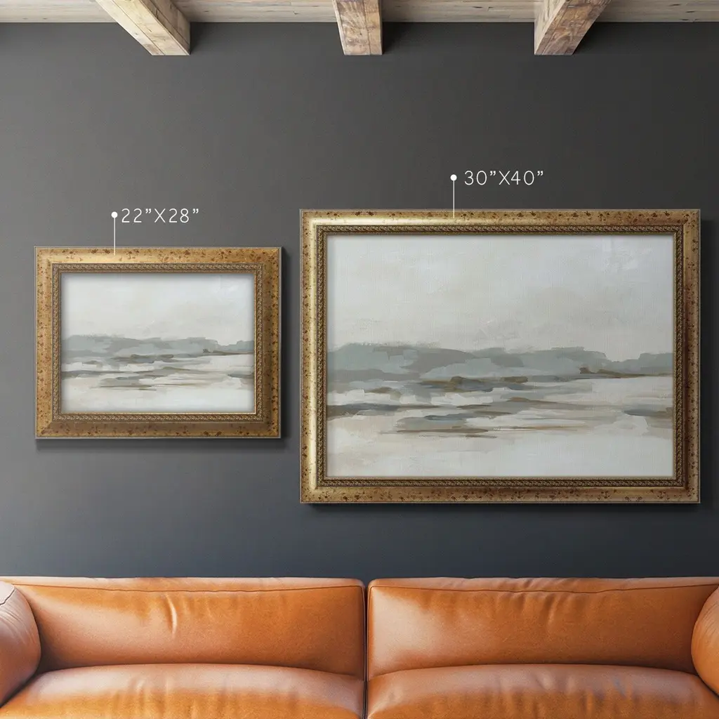 Neutral Coast I Premium Framed Canvas- Ready to Hang A Premium Framed Canvas created to last. Framed in distressed wood and available in an array of sizes and colors Featuring a beveled a solid wood stretcher bar, each piece comes ready to hand 3 SIZES AVAILABLE 16''X20'' - Overall Size 18'X27'' - Overall Size 24''x36'' - Overall Size Each piece is made to order. Each piece comes with hanging hardware. Made in the USA Ready to Hang Giclee Paper Print Acrylic Glass Beveled Matt Board