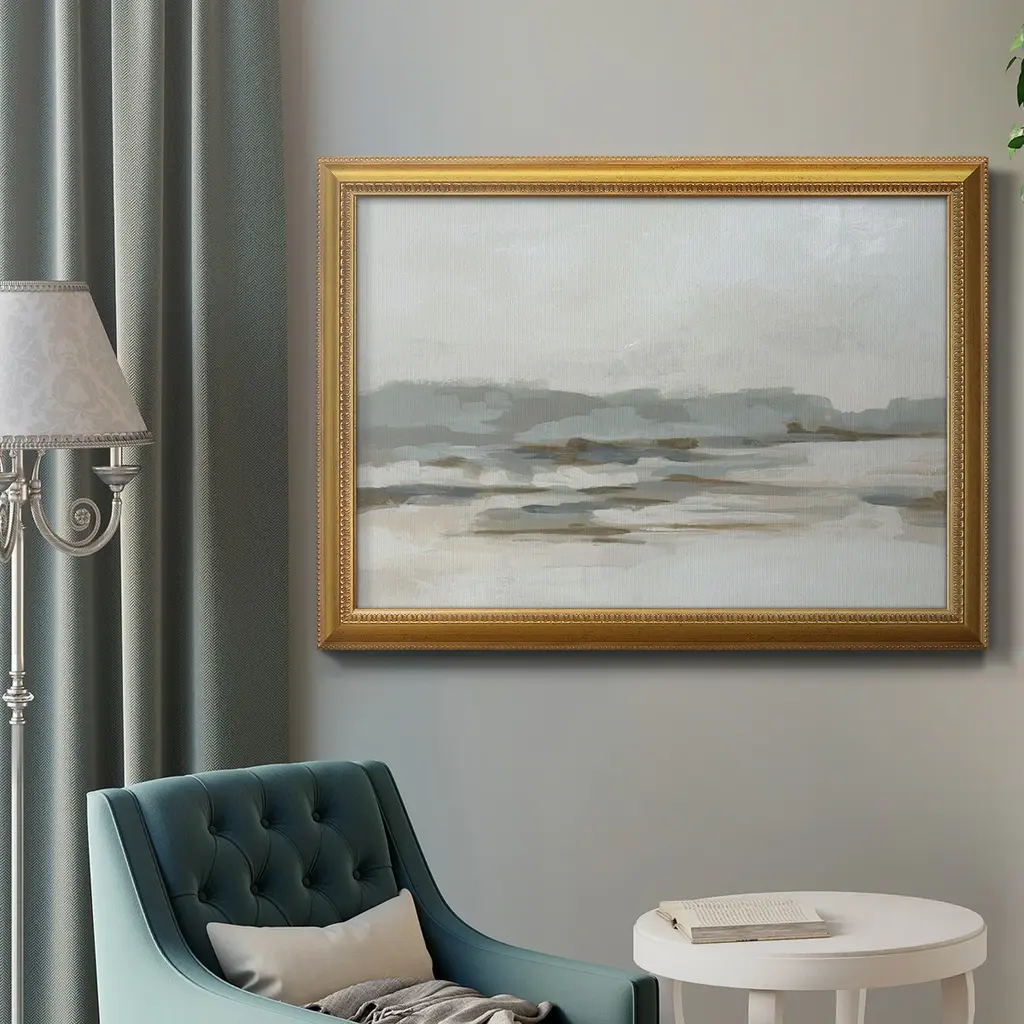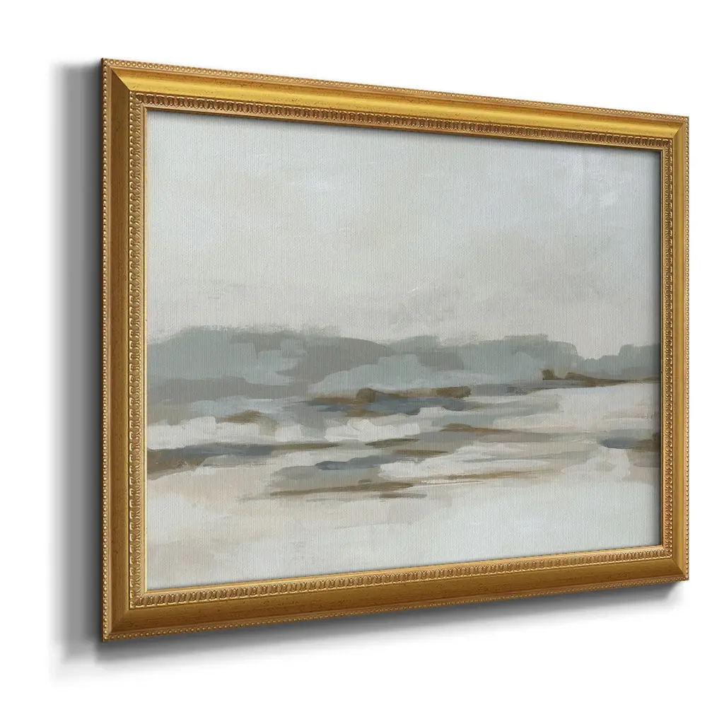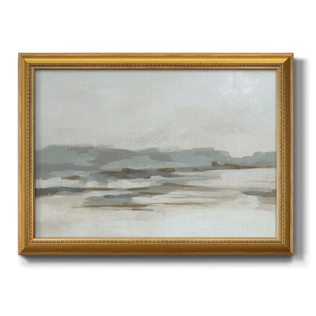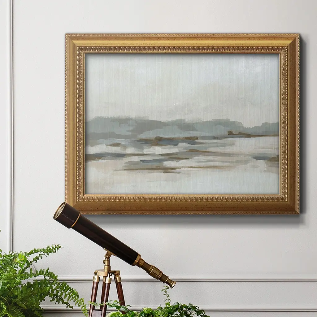 Neutral Coast I Premium Framed Canvas- Ready to Hang A Premium Framed Canvas created to last. Framed in distressed wood and available in an array of sizes and colors Featuring a beveled a solid wood stretcher bar, each piece comes ready to hand 3 SIZES AVAILABLE 16''X20'' - Overall Size 18'X27'' - Overall Size 24''x36'' - Overall Size Each piece is made to order. Each piece comes with hanging hardware. Made in the USA Ready to Hang Giclee Paper Print Acrylic Glass Beveled Matt Board